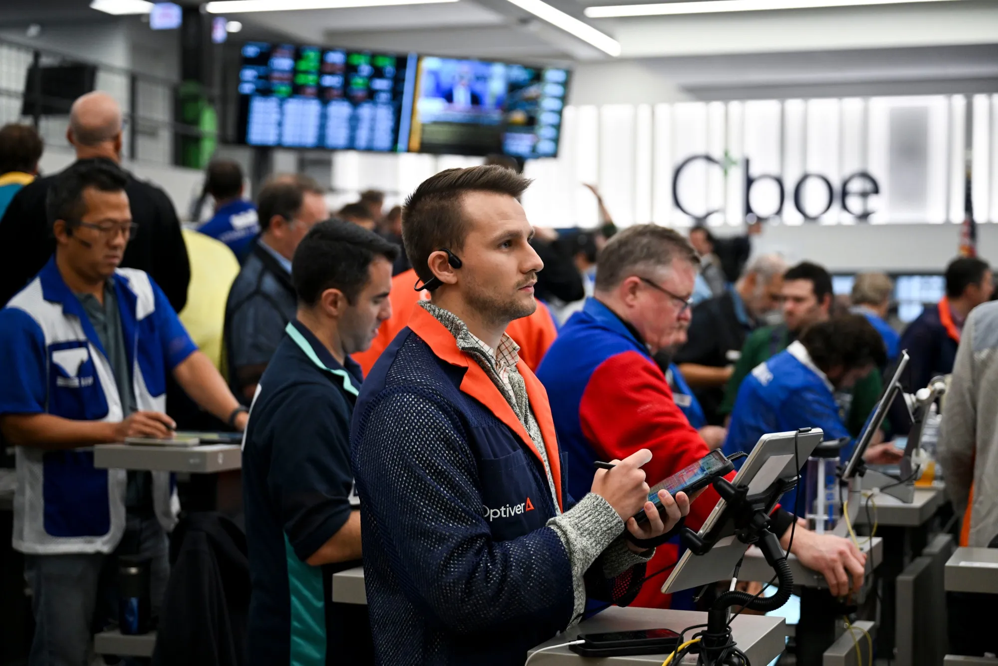 交易员在美国伊利诺伊州芝加哥的Cboe全球市场交易所的标准普尔期权交易区工作,时间是2024年11月7日星期四。美联储在星期四将基准贷款利率下调了四分之一个百分点,继续努力保持美国经济扩张的稳固基础。摄影师:文森特·阿尔班/彭博社你几乎可以现在就感受到这一点。在经历了数月关于谁将成为下任美国总统以及这对市场意味着什么的市场猜测后,我们正在回到现实。别误会,所谓的特朗普交易仍然主导着头条新闻,并导致股票、债券、比特币和美元的剧烈波动。但价格走势将变得更加平淡。