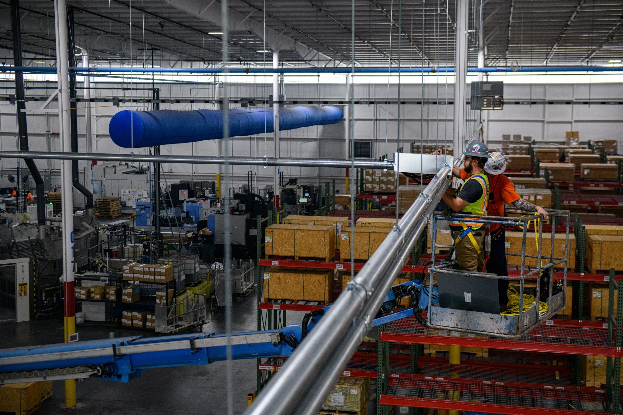 美国阿拉巴马州穆斯尔肖尔斯的Linamar Corp.电池外壳制造厂的工人。