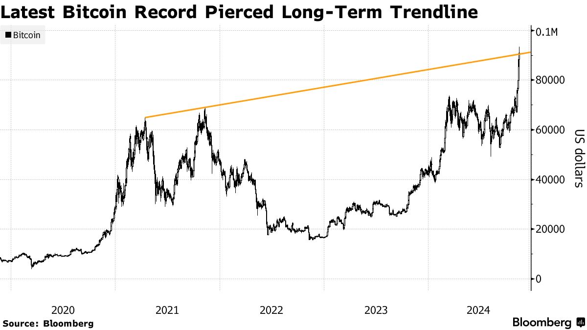 比特币在短时间内突破了93,000美元,因为市场对美联储进一步降息的预期,加上当选总统唐纳德·特朗普的亲加密货币立场,推动了这一走势。