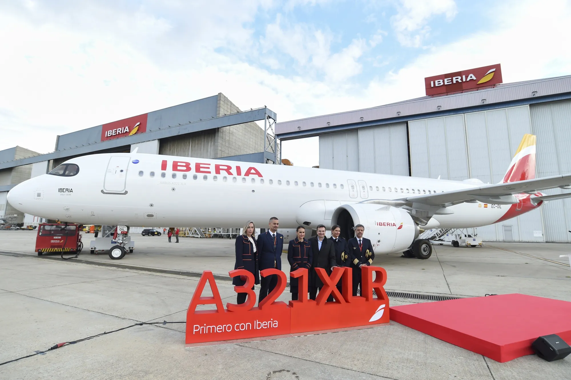 2024年11月13日在马德里伊比利亚航空的维修设施上展示的新款A321 XLR。