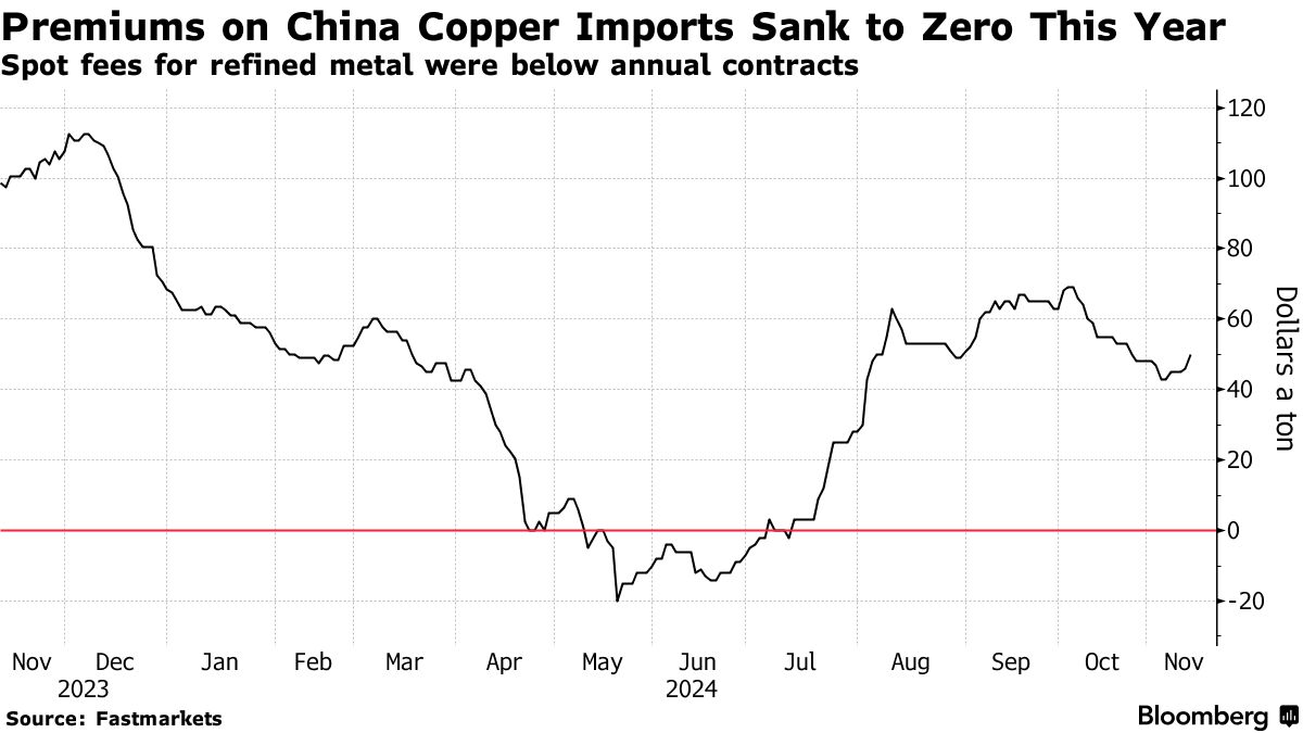 今年早些时候,进口铜的现货市场溢价跌至零以下,这对在去年的亚洲铜周上以每吨89美元签署年度费用的买家造成了伤害。溢价是中国交易商和制造商在伦敦金属交易所价格之上支付的附加费。