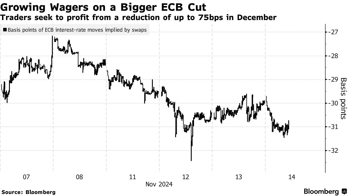 摄影师:亚历克斯·克劳斯/彭博社一位交易员正在押注欧洲中央银行下个月将进行大幅降息,这一情景在唐纳德·特朗普的政党 赢得控制 美国国会两院后变得更加可信。