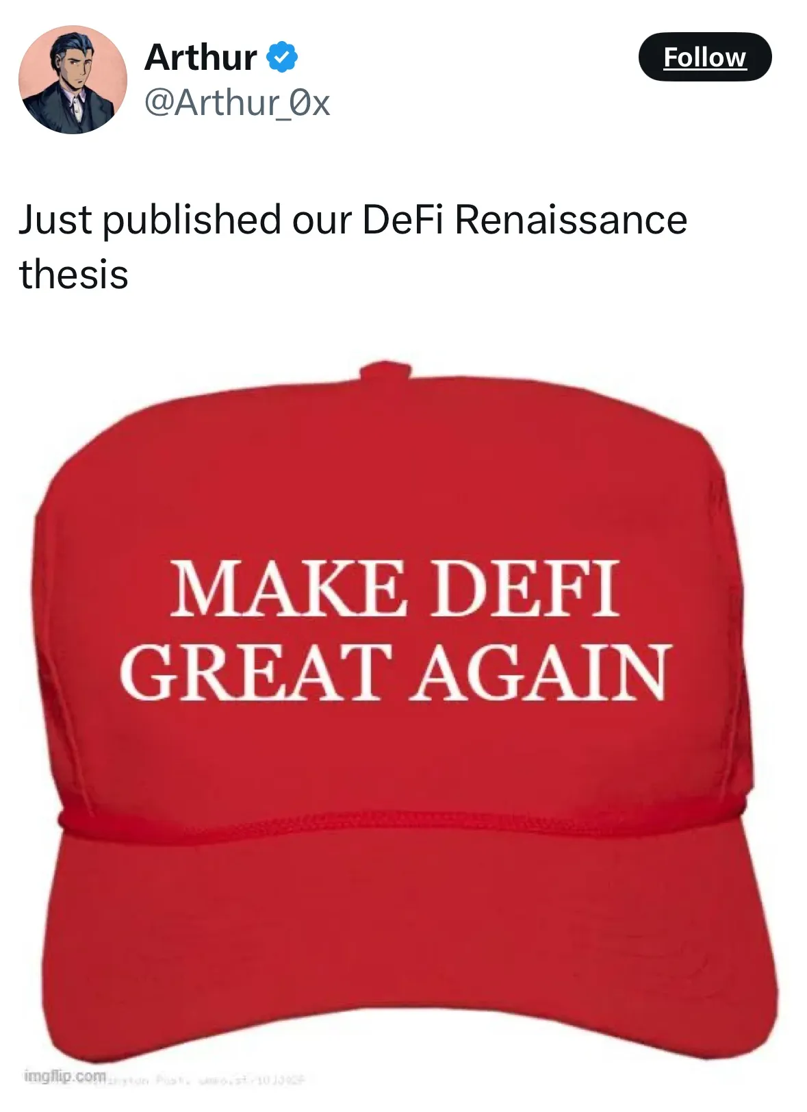 来源:@Arthur_0x](https://x.com/Arthur_0x/status/1845845815379820870)一些人认为,DeFi的复苏表明最新的牛市比之前的反弹更具基础。