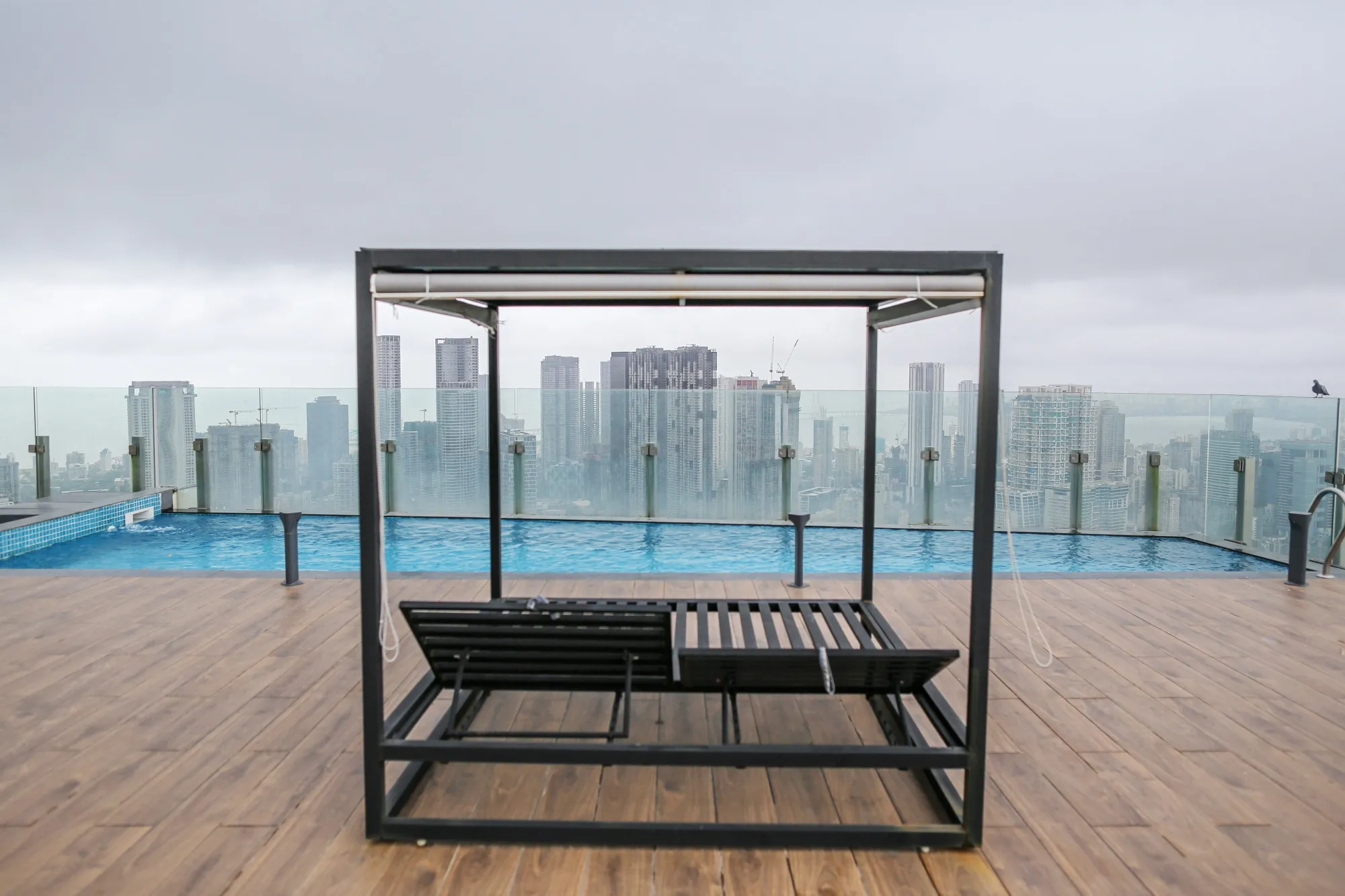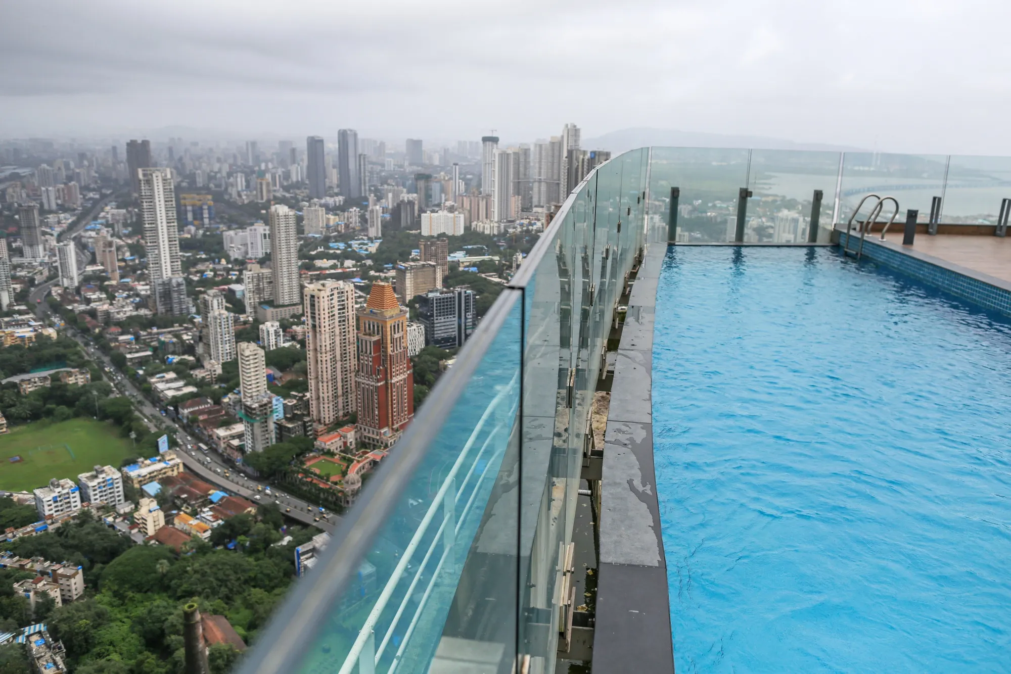 孟买下帕雷尔的One Avighna Park顶层公寓的屋顶游泳池。