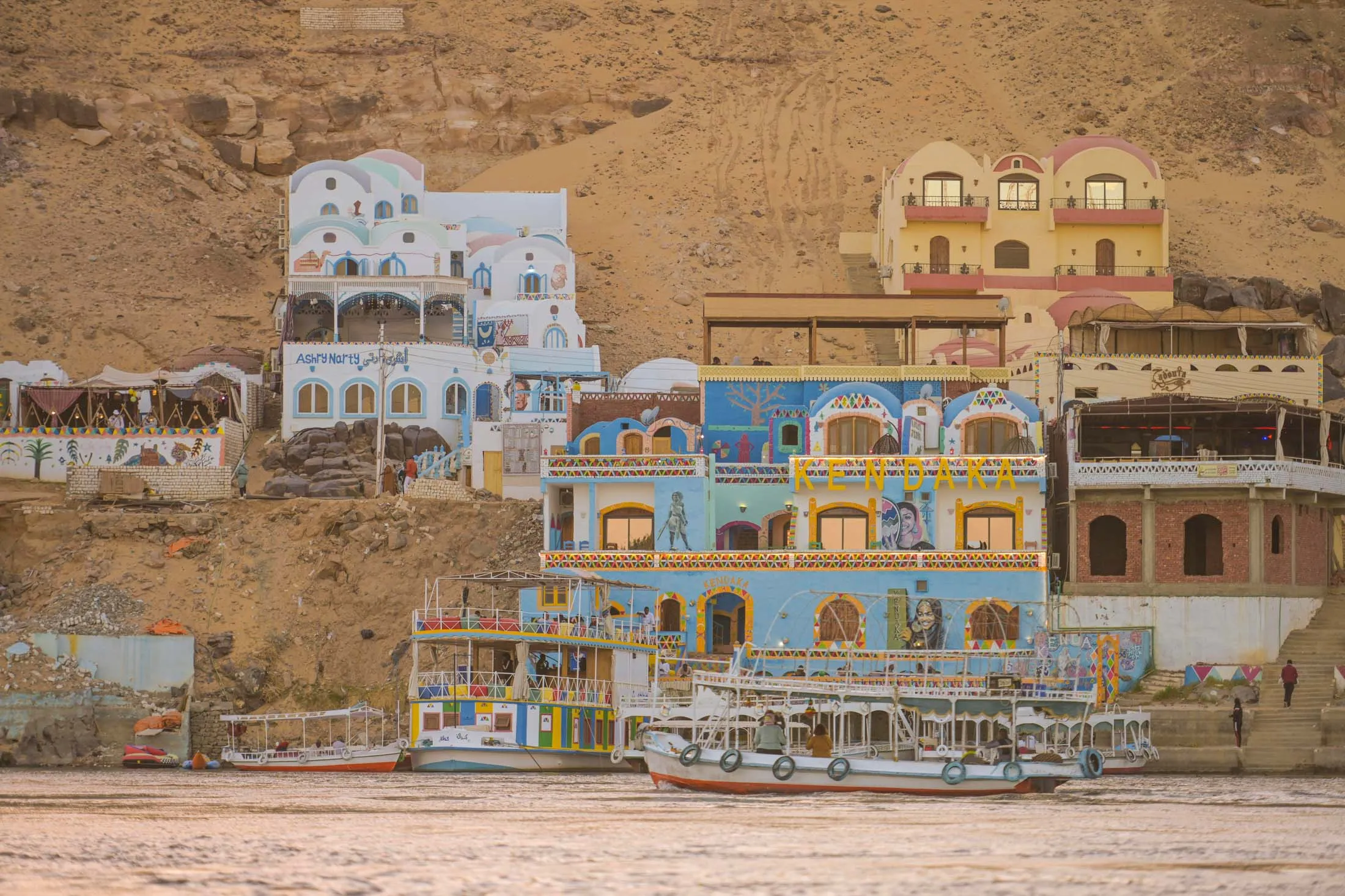 如果你打算 在2025年参观大埃及博物馆,那么在吉萨以南的阿斯旺停留将是值得的。从那里,乘坐30分钟的船南下,抵达位于尼罗河岸边的宁静古老努比亚村庄加尔布·苏海尔。除了那些鲜艳的蓝色、黄色和赭色的房屋外,你还会发现引人注目的艺术壁画,这些壁画被称为赋予该地区一种活生生的户外博物馆的感觉。你可能会被邀请进入一个努比亚家庭的家中,了解他们的生活方式,你也可以在集市上花时间购物,购买手工艺品、珠宝和香料。一些奢华的旅游运营商,如 黑番茄,提供在阿斯旺的停留,继续沿尼罗河前往阿布辛贝。