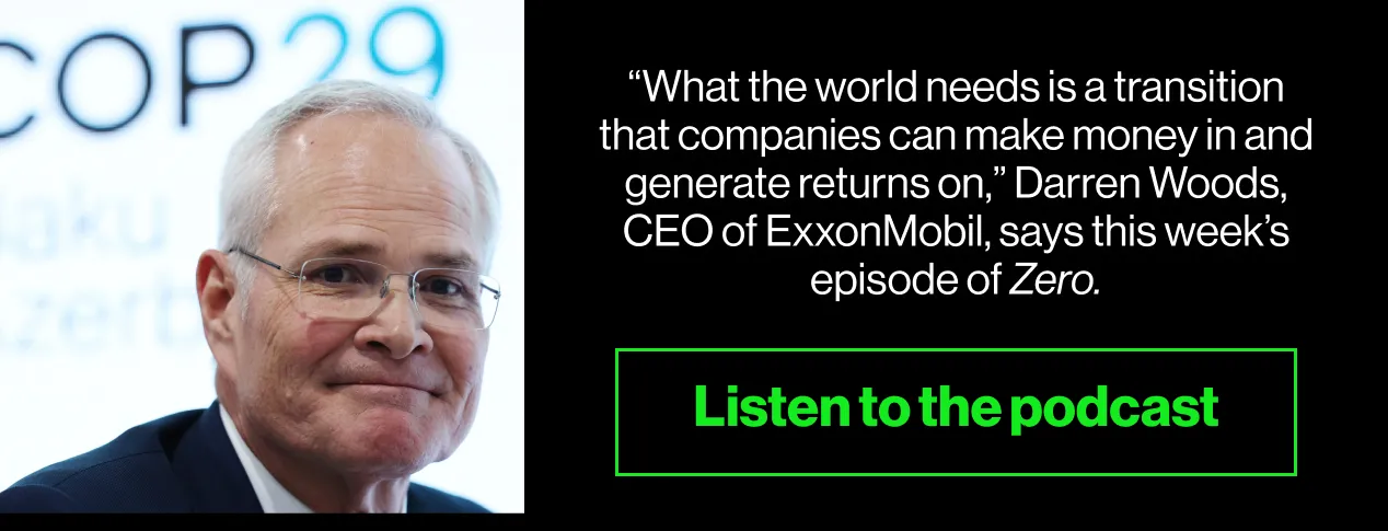 记者阿克沙特·拉提与埃克森美孚首席执行官达伦·伍兹进行了交谈,伍兹在联合国气候大会上首次亮相。他阐述了为什么即将上任的美国总统唐纳德·特朗普不应该退出巴黎协定,并应维护拜登政府通过的重大气候立法。这对于一家有着众多历史记录的公司来说,语气发生了相当大的转变,过去该公司曾对全球变暖的危险产生怀疑。现在收听,并在 Apple、Spotify 或 YouTube 订阅,以便每周四获取新剧集 Zero。