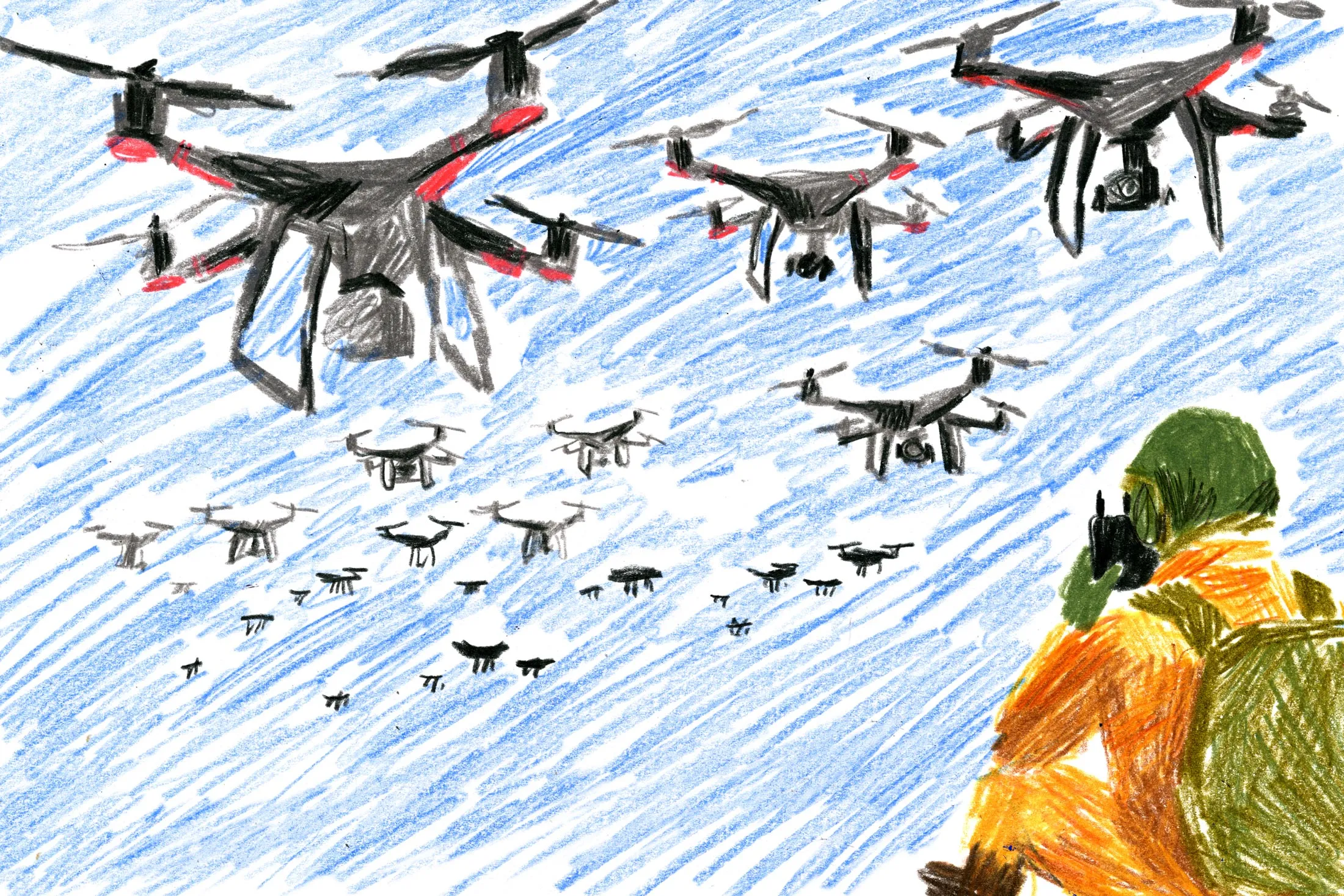当俄罗斯入侵时,基辅的军队只有几十架大型土耳其制造的Bayraktar无人机。它们的导弹帮助减缓了敌人的推进,但很容易被发现,并且随着俄罗斯将防空系统移至前线,迅速变得脆弱。军方还得到了平民的帮助,他们将为航空摄影购买的无人机改装用于侦察炮兵。它们直播的俄罗斯部队推进的画面使乌克兰的炮手能够摧毁整列坦克和装甲运兵车。