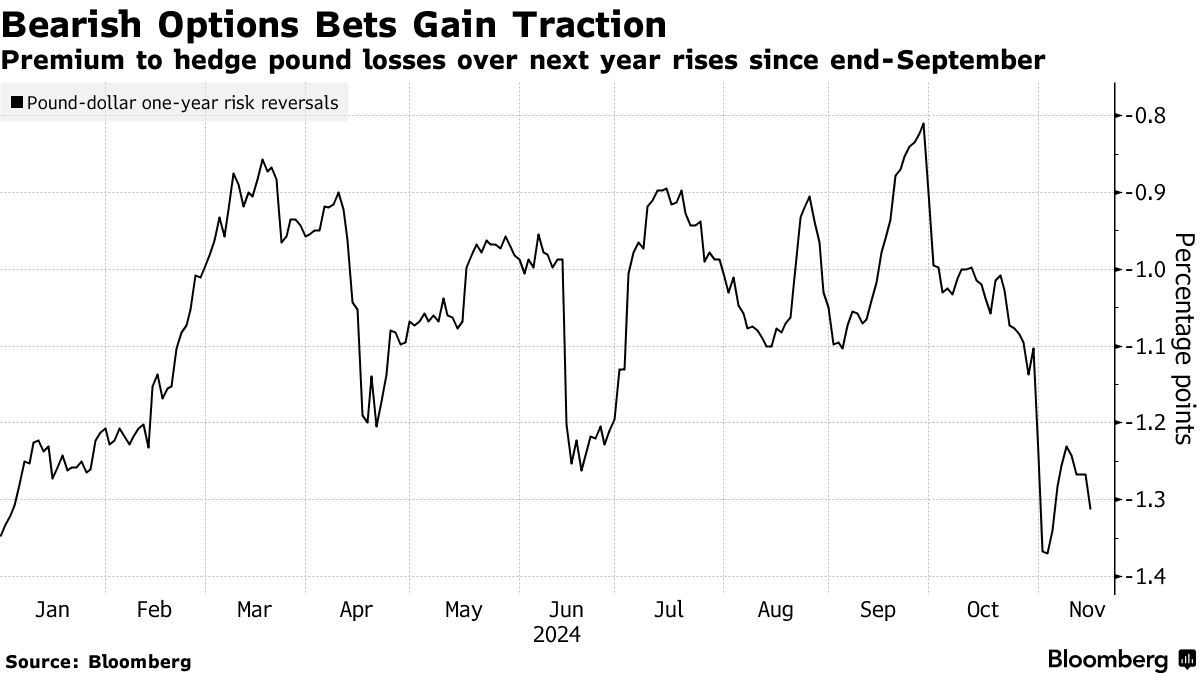 尽管如此,期权交易表明,英国货币可能进入结构性疲软阶段,因为对长期债券的看跌情绪正在加剧。根据不愿透露身份的外汇交易员的说法,本周投机者和机构投资者普遍增加了对美元的多头敞口,因为他们没有被授权公开发言。