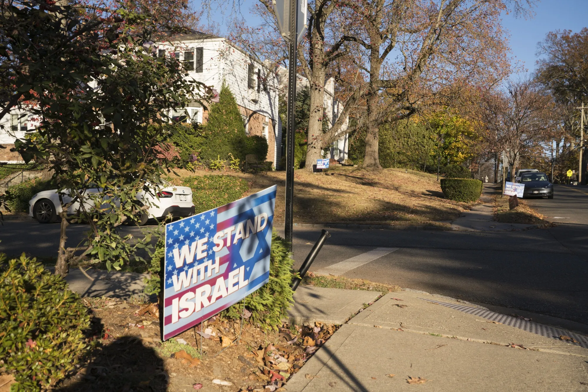 在纽约大颈支持以色列的标志。摄影师:本·斯克拉/Bloomberg在全国范围内以及在纳苏,选民列举了一系列问题——从经济、移民到公共安全——来解释他们向右转的原因。他们的理由可以像县内100多个城镇、村庄和小区的独特身份一样多样。