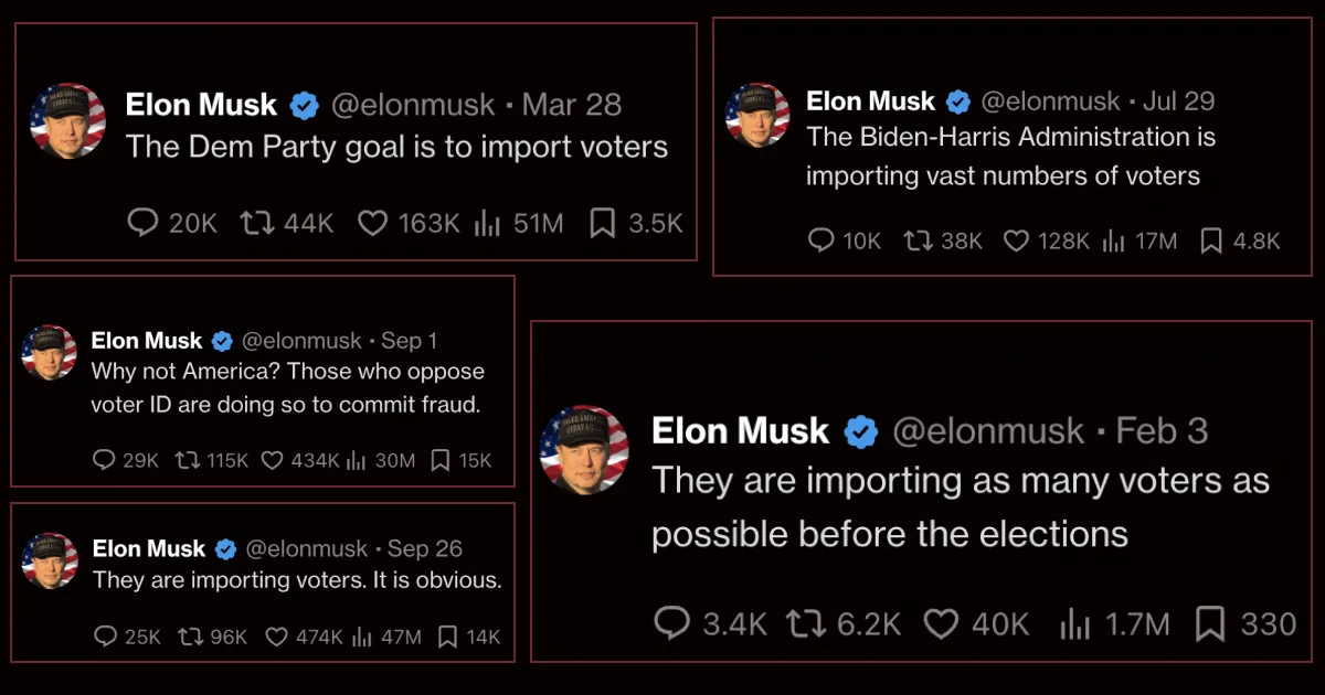 **埃隆·马斯克:**这位X的拥有者和即将上任的新咨询机构的负责人利用他的社交媒体公司不遗余力地宣传反移民叙述和选举阴谋。凭借这样的接触,马斯克接近那些可以将这些反移民政策付诸实践的人。推文——例如,他将试图帮助移民的非政府组织描述为非法——可能提供了潜在变化的线索。
