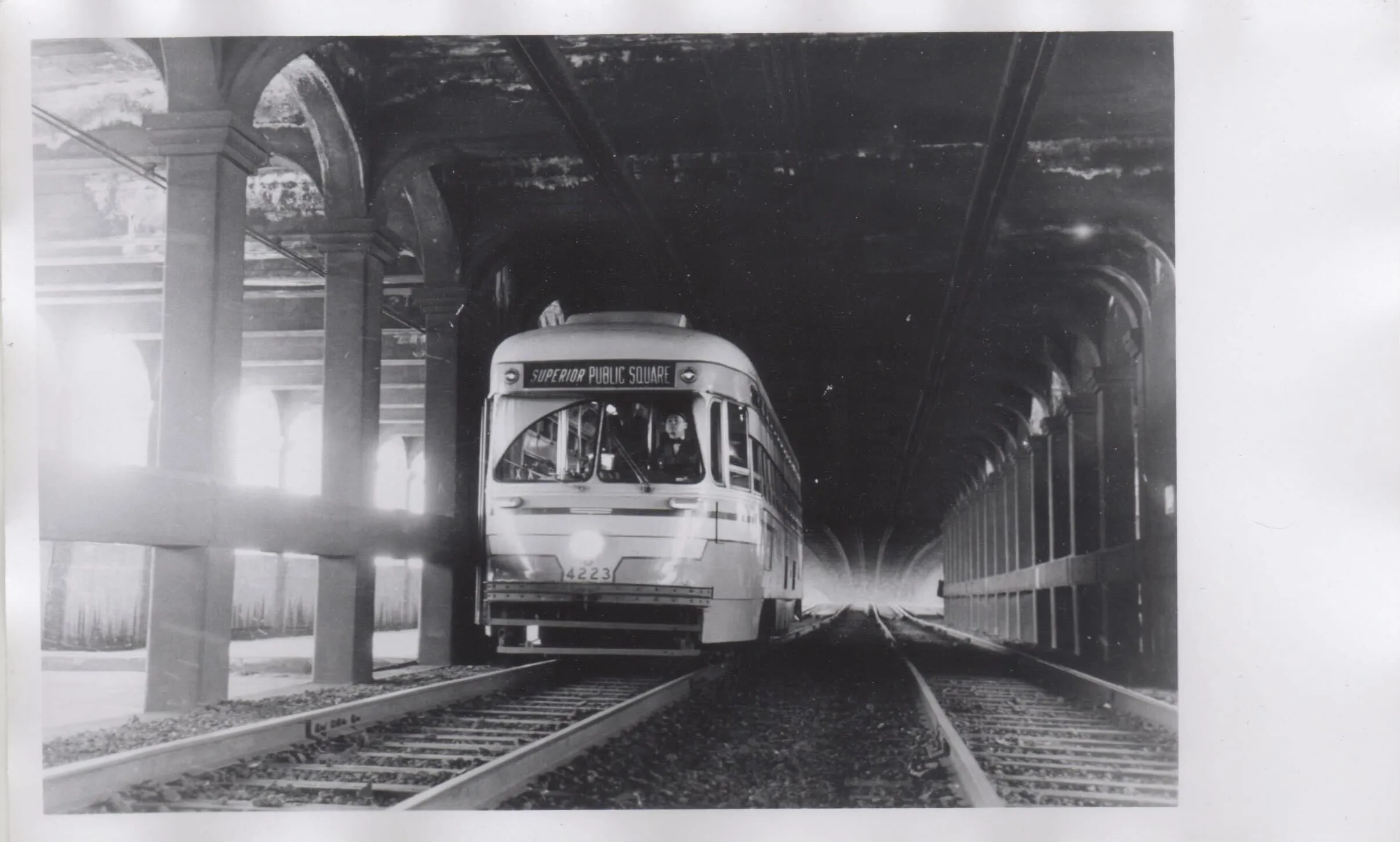 1954年1月24日清晨,克利夫兰铁路公司的一辆电车最后一次离开市中心的公共广场,驶过底特律-超级桥的下层甲板。