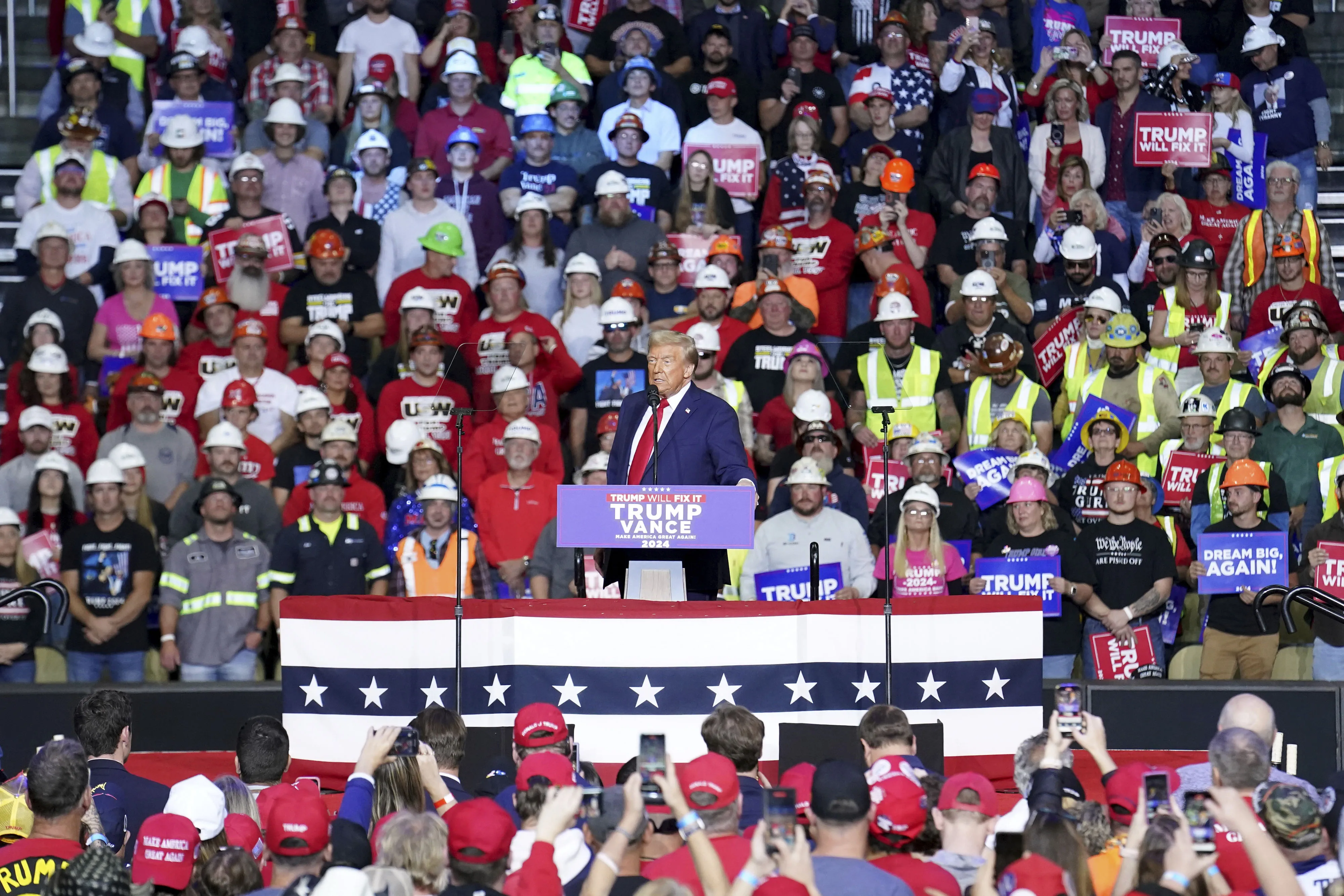 唐纳德·特朗普在11月4日的匹兹堡竞选集会上。摄影师:马特·弗里德/AP照片