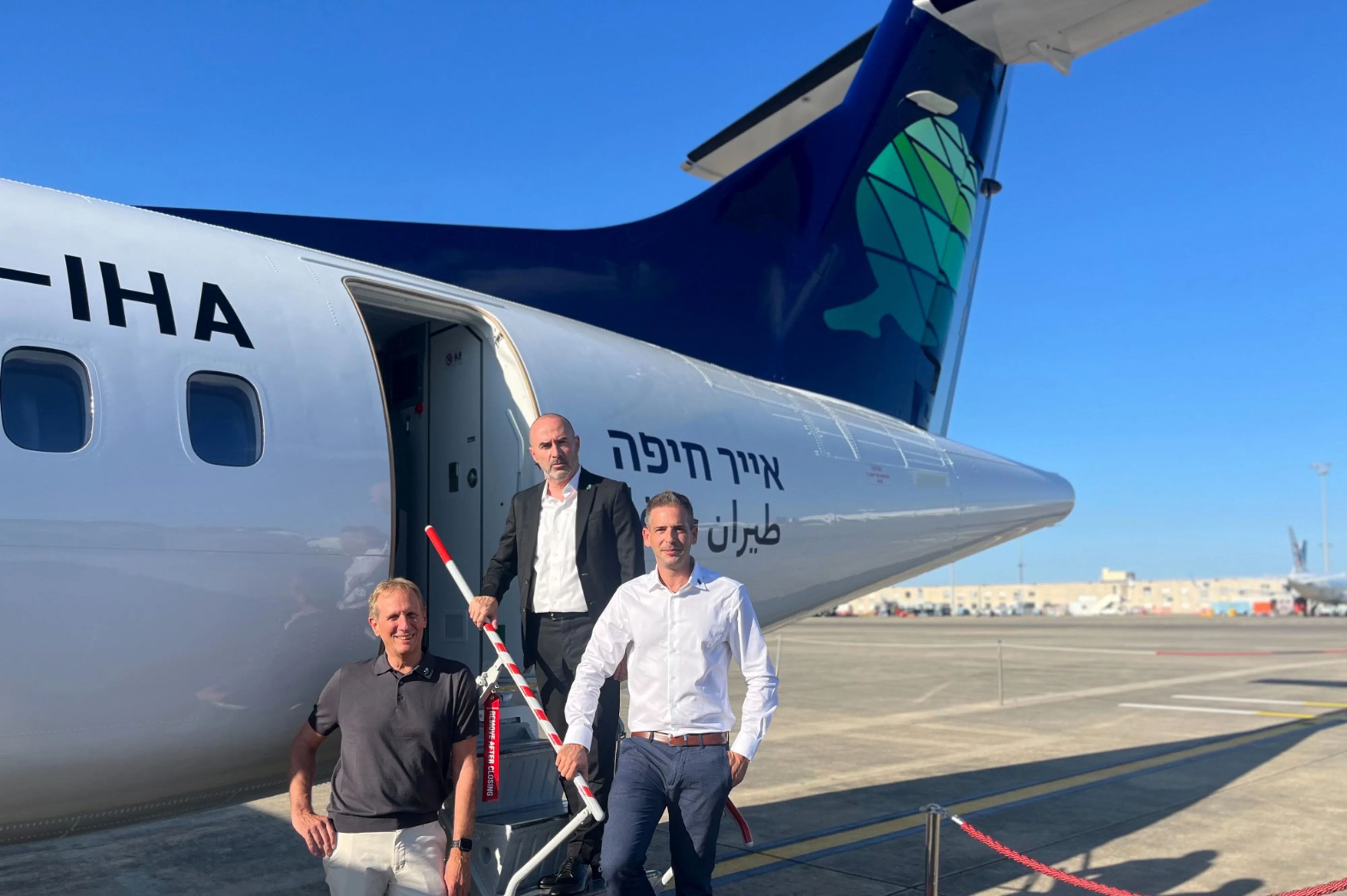 Air Haifa的联合创始人兼执行副总裁迈克尔·斯特拉斯堡(右),与联合创始人利奥尔·雅沃(左)和联合创始人兼首席执行官戈嫩·奥西什金。来源:Air Haifa这为成立两个月的Air Haifa创造了一个市场。与同行El Al、Israir或Arkia不同,它仅提供一个目的地——塞浦路斯的拉纳卡——尽管每天有六个航班。前往雅典的航班正在筹备中。