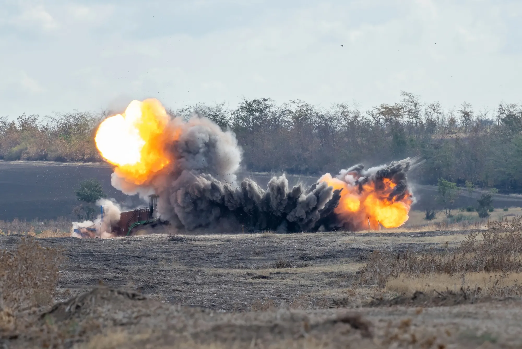 霍华德·G·巴菲特基金会在乌克兰米科拉伊夫地区进行新滚筒系统的耐久性现场测试,控制引爆一枚TM-62反坦克地雷。来源:霍华德·G·巴菲特霍华德·G·巴菲特基金会于2022年加入土地清理倡议,是提供技术解决方案(包括机械设备)的最大捐助者之一。作为一名经验丰富的农民,巴菲特——沃伦·巴菲特的儿子——表示他并没有“发明任何新东西”,而是与工程师合作,将推土机和拖拉机改造成可以远程操作的设备,或与驾驶员一起进行土地勘测和清理。