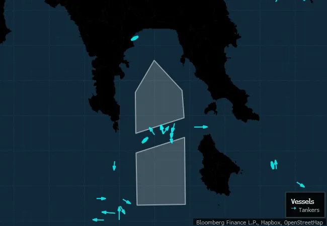 油轮避开覆盖希腊海军演习的区域。政府此前表示,这些演习旨在阻止被世界航运监管机构认定为对海上安全构成风险的货物转运。