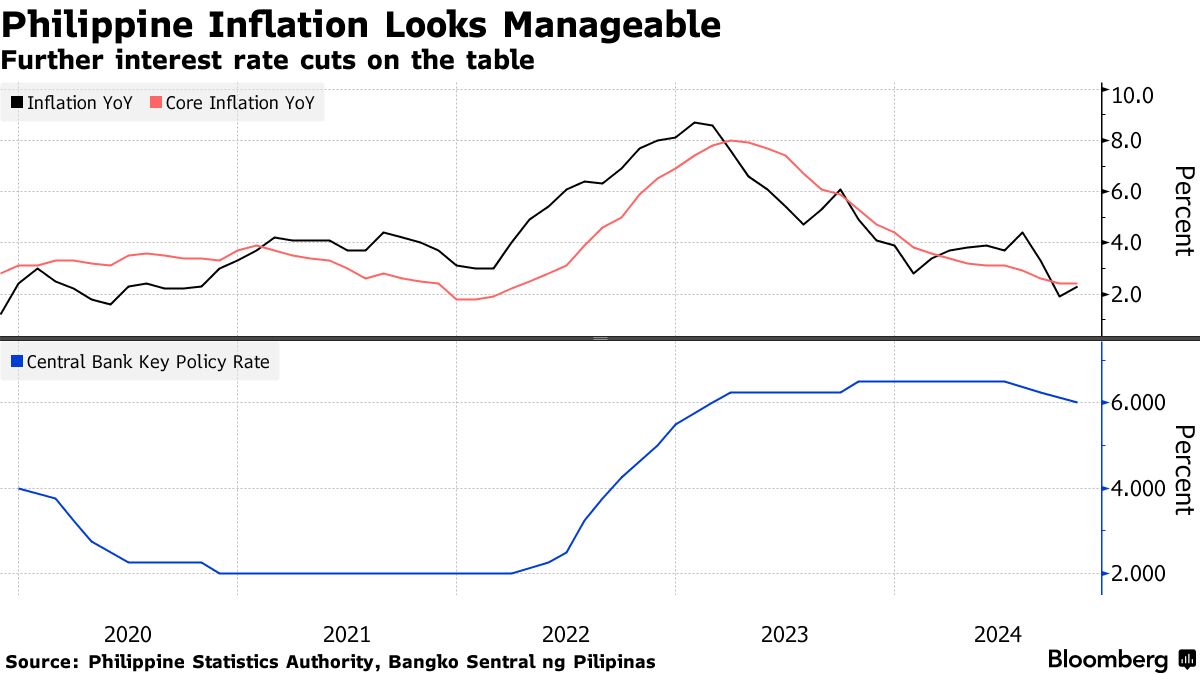 菲律宾中央银行行长认为,本月通胀将保持在2%-4%的目标范围内,这为当局提供了宽松的余地。他还表示,中央银行在外汇市场上“稍微”进行了干预,并补充说,除非货币贬值幅度较大,否则不会必然导致通胀。
