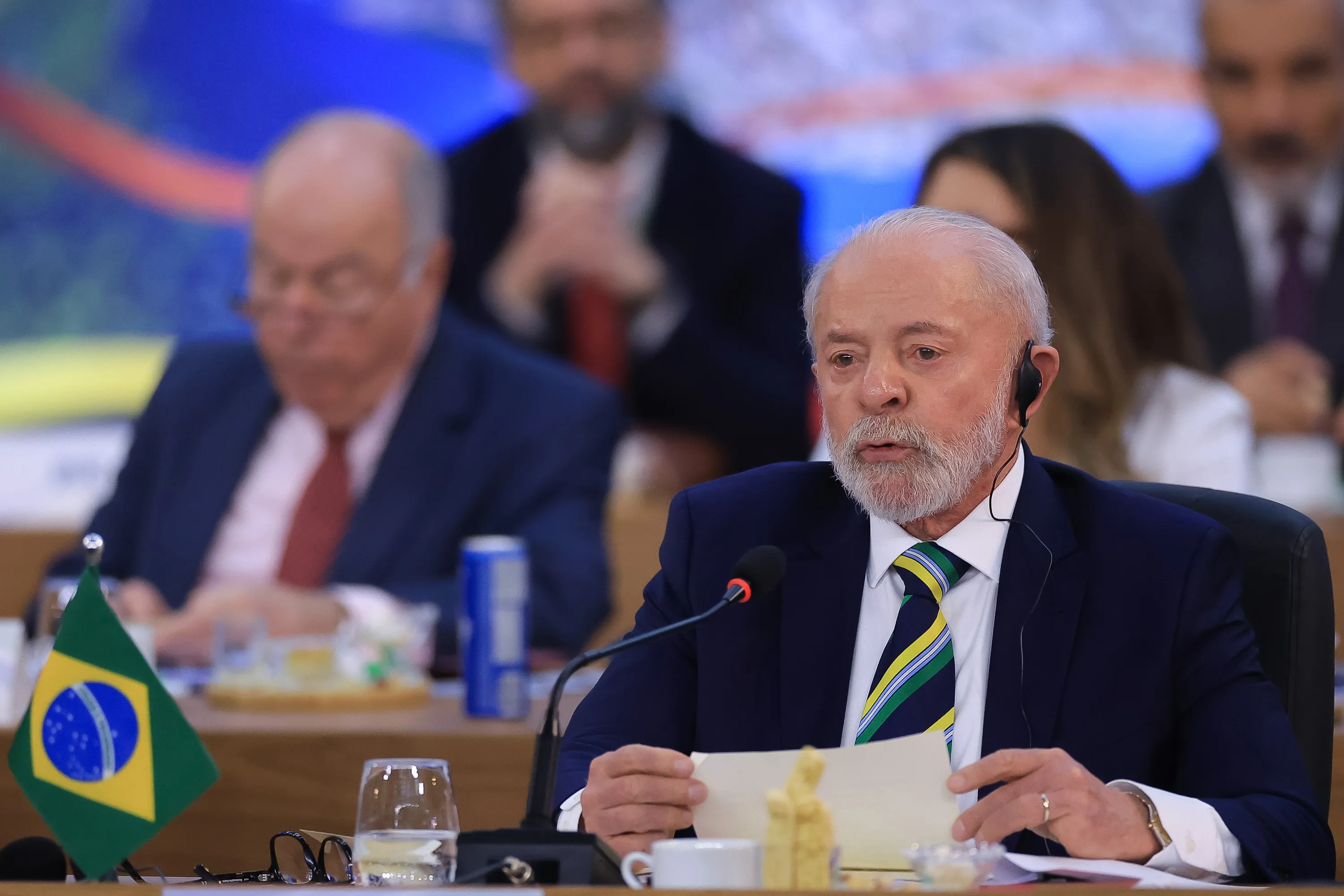 路易斯·伊纳西奥·卢拉·达·席尔瓦在2024年11月18日巴西里约热内卢举行的G20峰会第一场工作会议上发言。