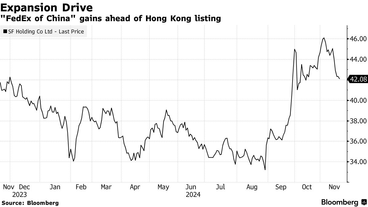 根据彭博社汇编的数据,香港的上市量在最近几个月有所回升,2023年迄今为止融资量上升了92%,达91亿美元。如果SF——被称为中国的联邦快递——在市场范围的高端定价,它可能成为今年该市第二大上市。