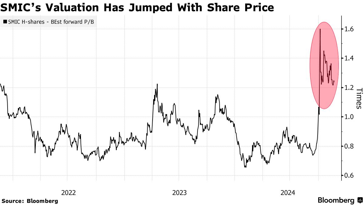 在香港上市的股票的前瞻市净率为1.2倍,高于其三年平均水平的0.9倍。基于账面价值的估值被认为比基于收益的倍数更有助于评估资产密集型、周期性业务,如芯片代工厂。