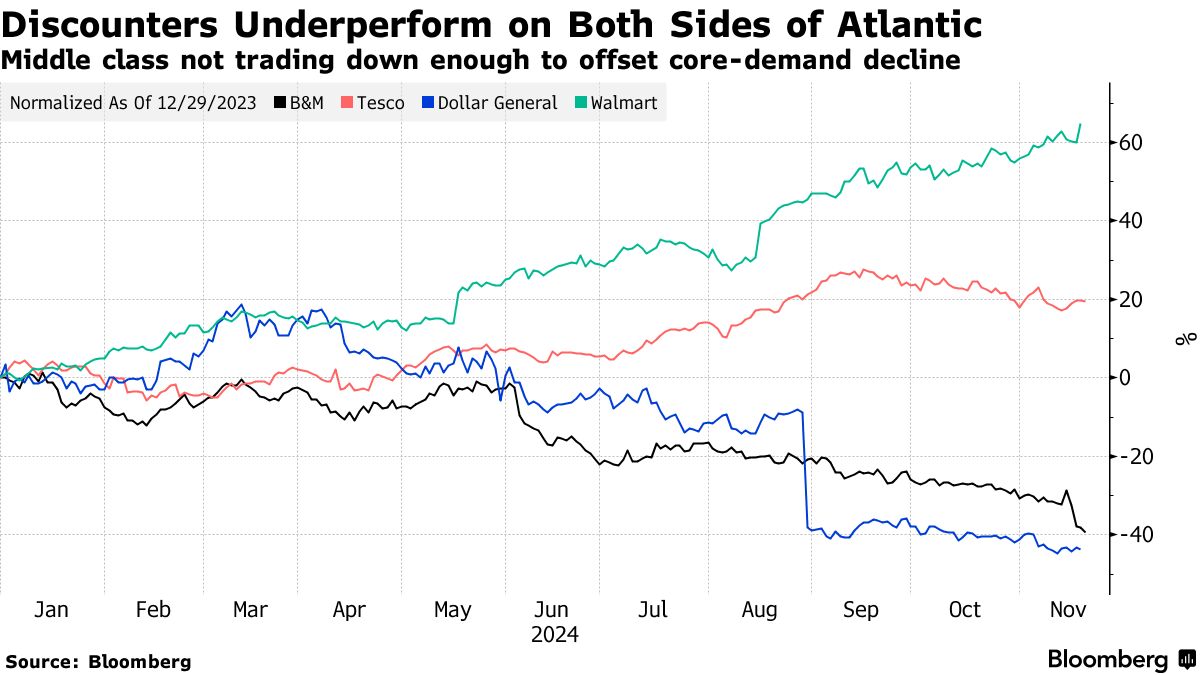 B&M欧洲价值是今年表现最差的FTSE 100股票,因为降级交易的希望减弱 - 彭博社