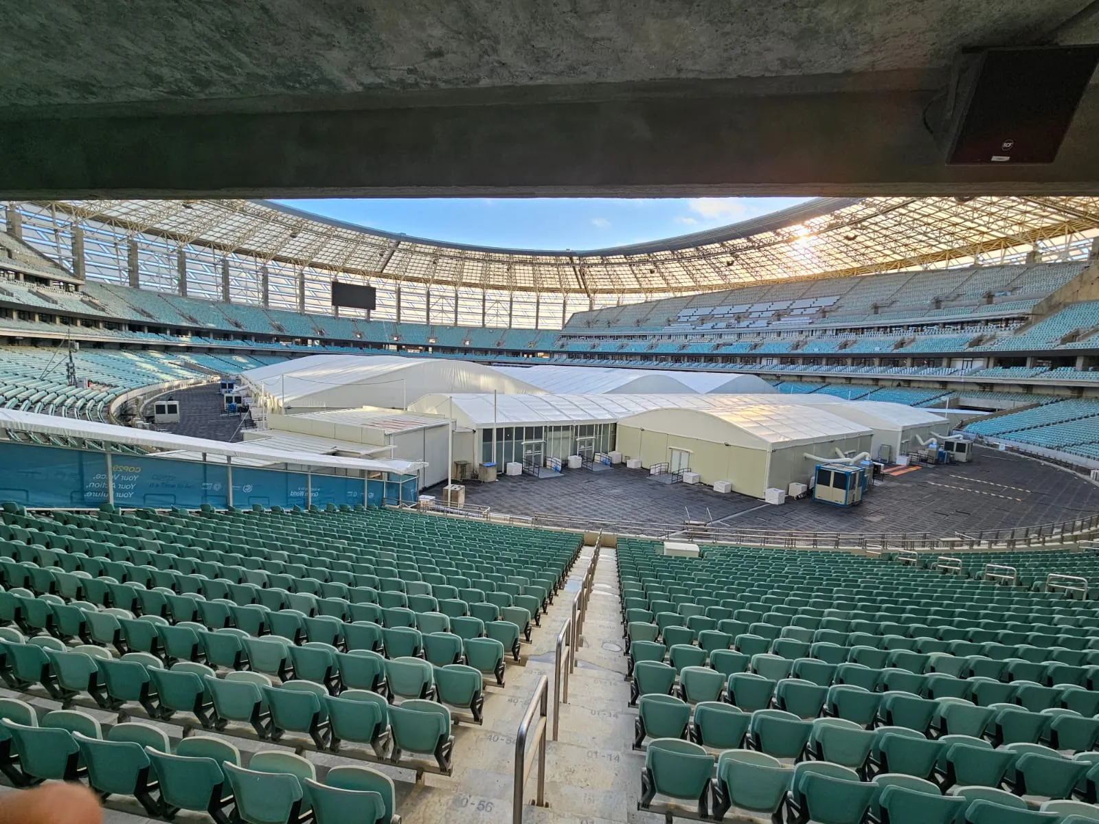 在巴库奥林匹克体育场内发生了很多事情,但很少有代表能够看到大多数人通常期待的场景。我们的记者Akshat Rathi在最近一个阳光明媚的日子里设法在蓝区走廊外拍了一张照片。尽管体育场的名字如此,但它从未举办过任何奥林匹克赛事。不过,努力争取未来的考虑还是值得赞扬的!