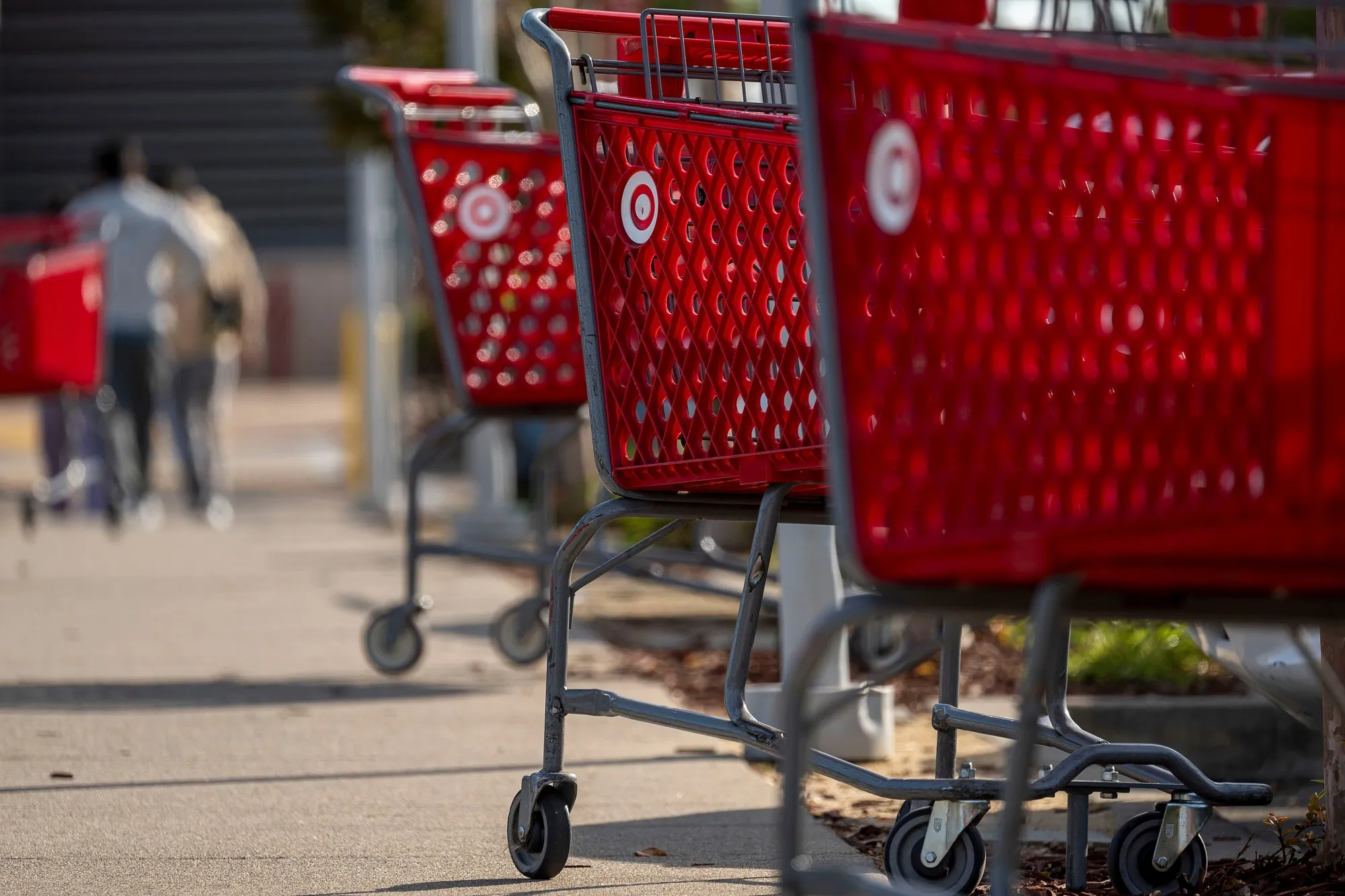 加州阿尔巴尼一家Target商店外的购物车。照片:大卫·保罗·莫里斯/彭博社Target Corp的股票在周三暴跌,此前这家美国零售商下调了全年盈利预期。