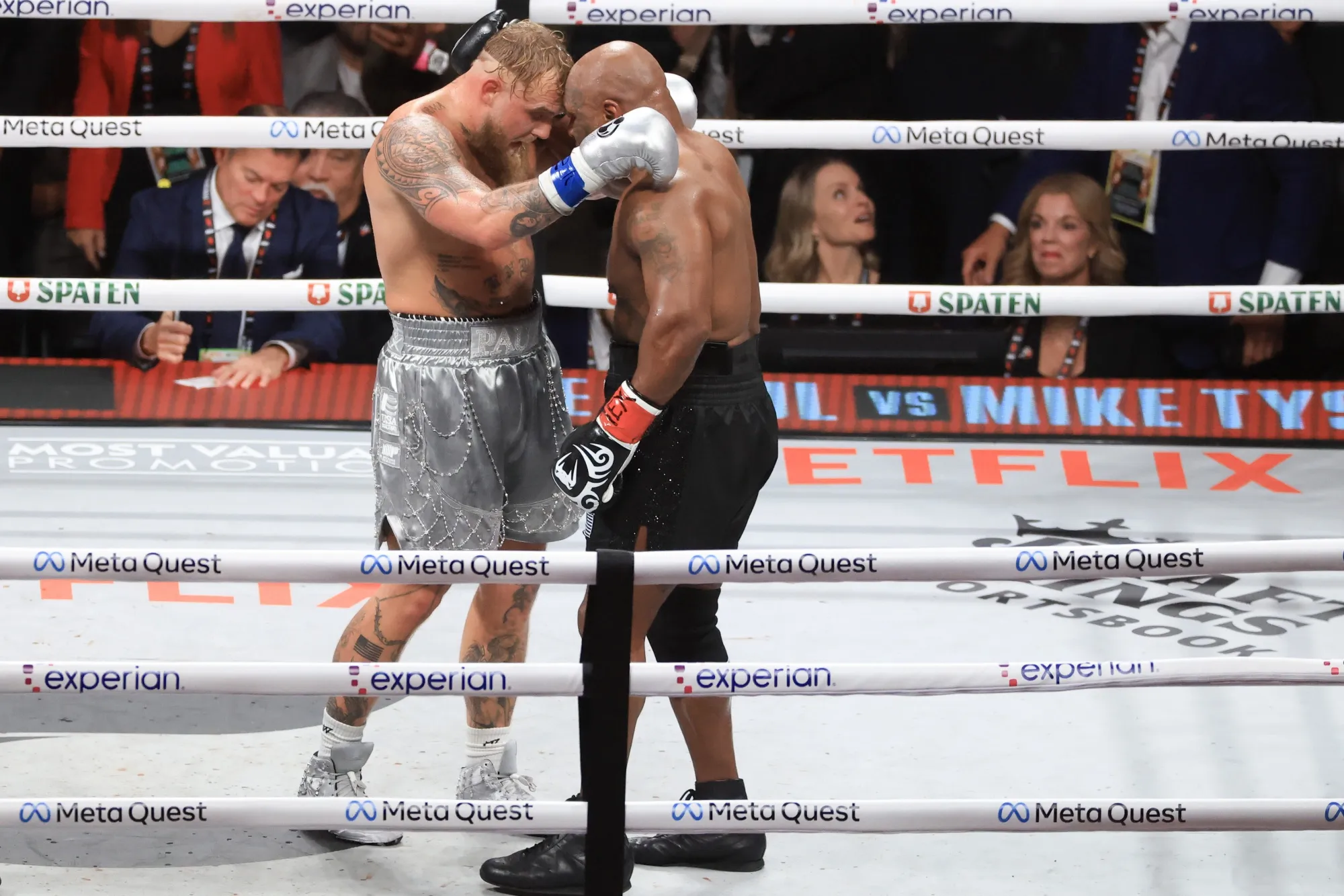 摄影师:克里斯蒂安·彼得森/美联社北美周五晚上的重量级对决,杰克·保罗与迈克·泰森的比赛令人难以观看——不仅仅是因为Netflix的 技术问题。58岁的泰森看起来老态龙钟,动作缓慢,不适合在擂台上,而27岁的社交媒体明星保罗 承认 他在放水:“我想给粉丝们一个表演,但我不想伤害一个不需要受伤的人。”