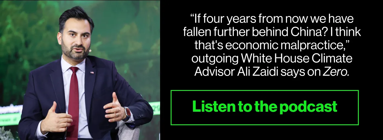 在巴库的COP29上,Akshat Rathi在彭博绿能的现场活动中与白宫国家气候顾问Ali Zaidi同台。Zaidi认为,特朗普政府放弃能源转型将是“经济失职”。此外,资深气候外交官Jonathan Pershing解释了他为何认为全球竞争将导致绿色政策的“行动加速”。现在就听,并在苹果、Spotify或YouTube上订阅,以便每周四获取新剧集Zero。