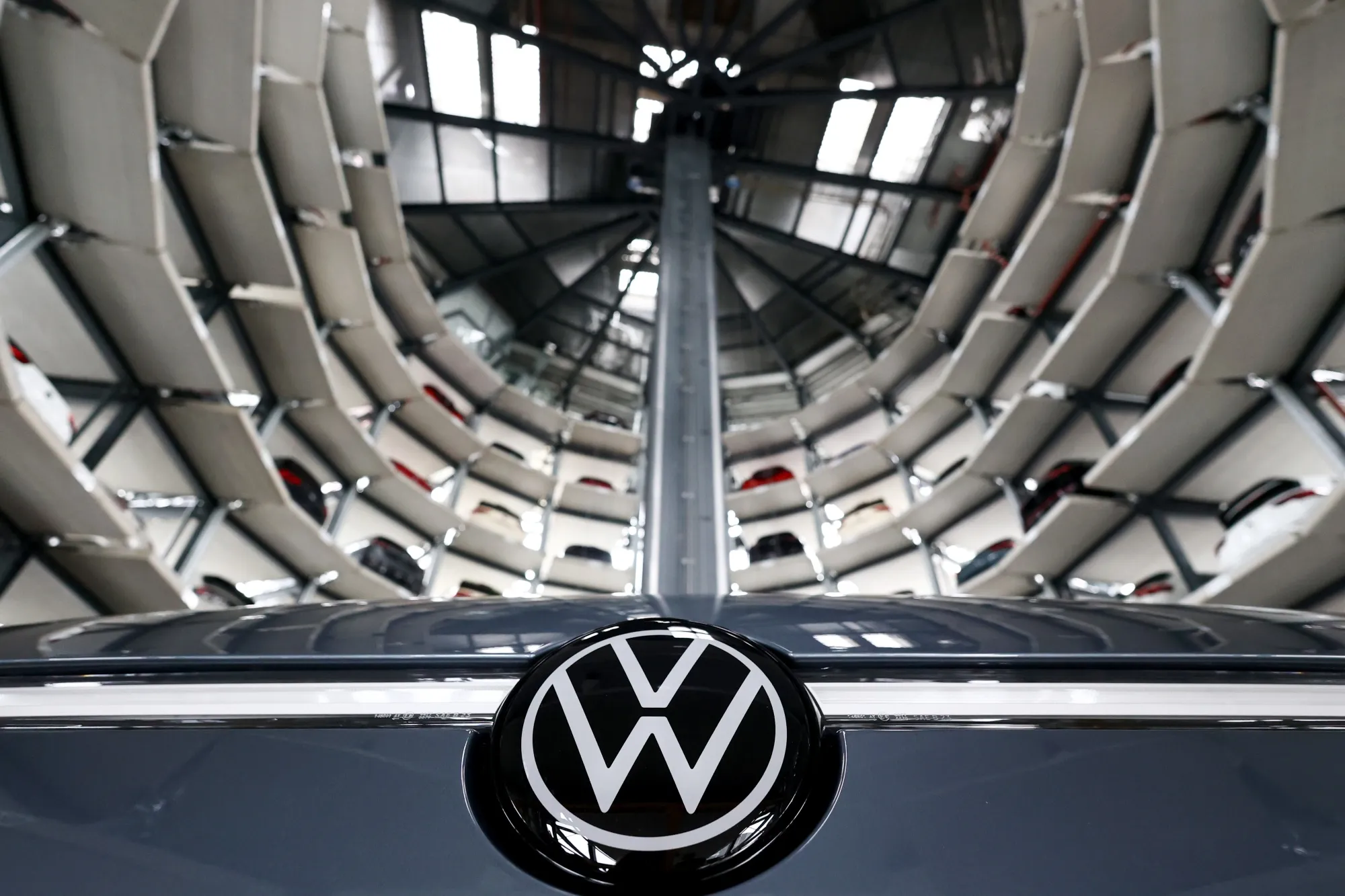 一辆大众ID.7电动汽车在德国沃尔夫斯堡的大众汽车公司总部和汽车工厂综合体的Autostadt汽车塔内,拍摄于2024年11月15日,星期五。大众向工人提出了节省成本的建议,以巩固其财务状况,同时可能避免在德国关闭工厂。摄影师:Liesa Johannssen/Bloomberg德国各地的大众汽车公司工人计划从下个月初开始进行大规模罢工,因为工会领导人与管理层未能就如何削减这家汽车制造商的成本达成协议。