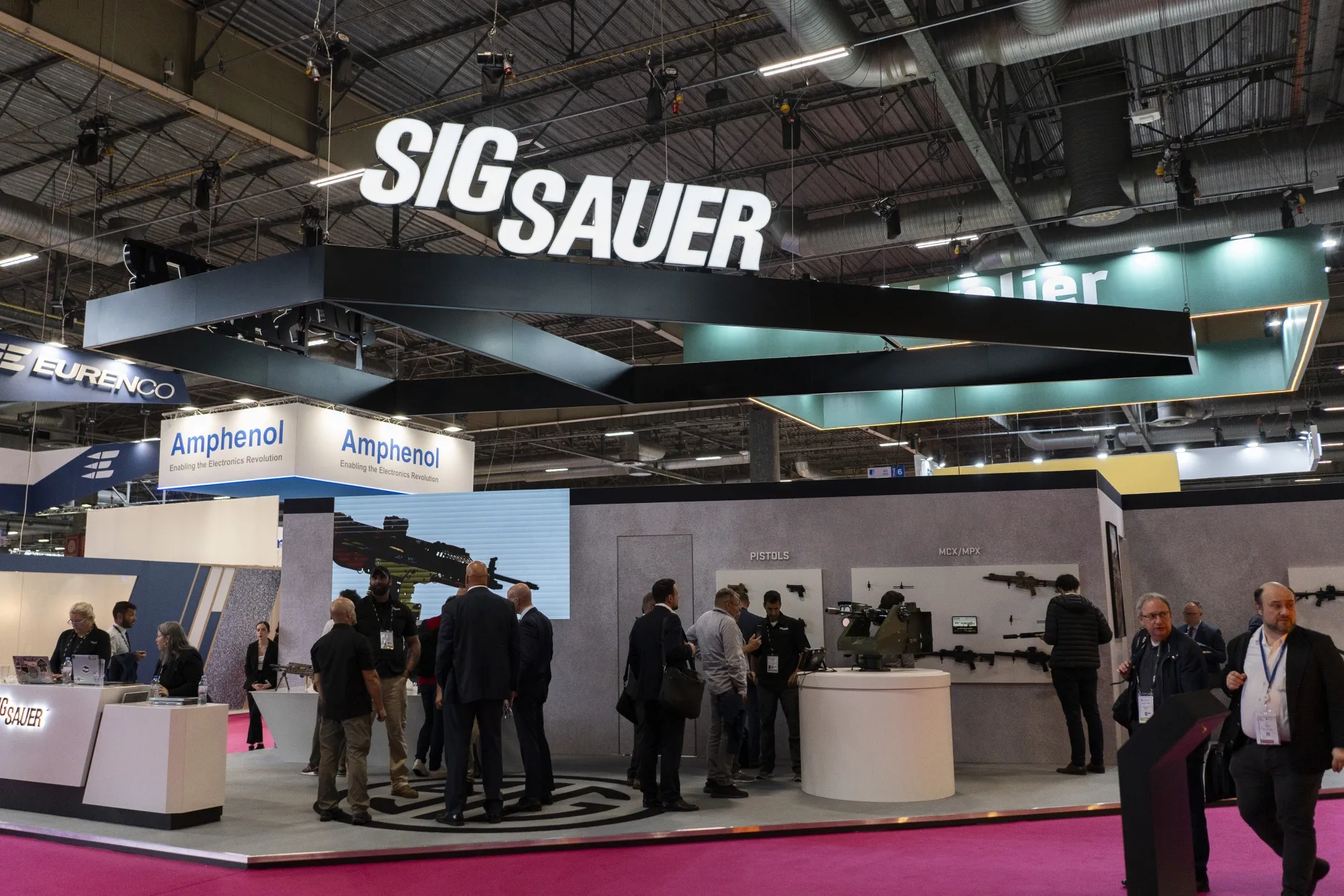 在6月18日于巴黎举行的欧萨托里国防与安全博览会上,Sig Sauer武器展示台。