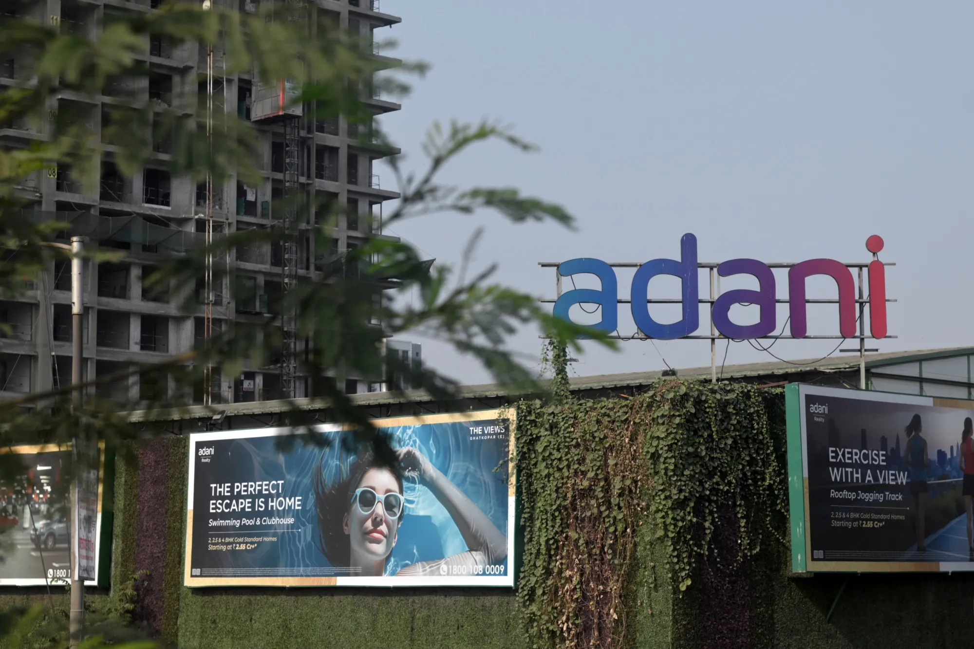 印度孟买阿达尼房地产住宅项目施工现场的阿达尼集团标识,拍摄于2024年11月21日,星期四。摄影师:Indranil Aditya/Bloomberg