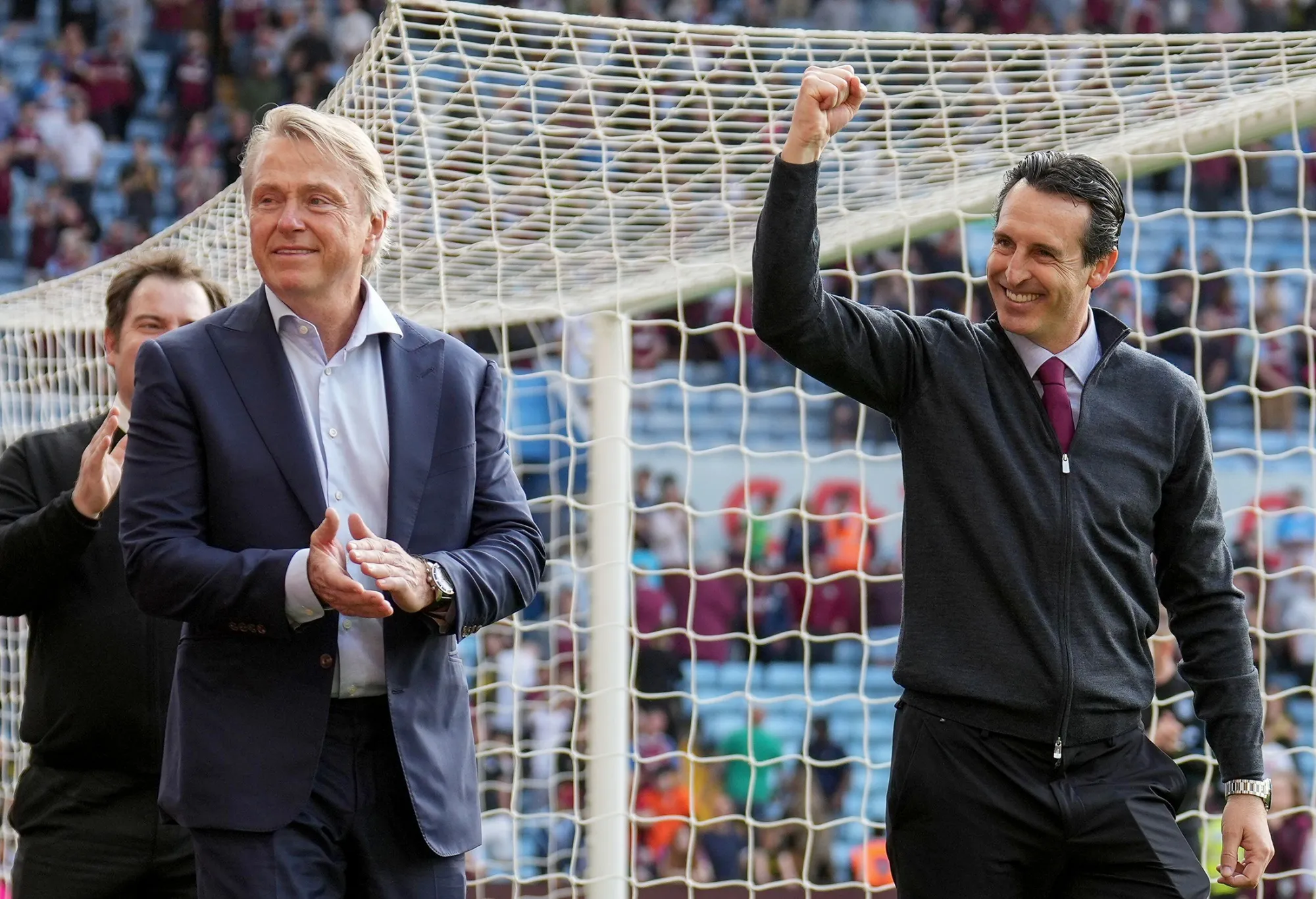 阿斯顿维拉经理乌奈·埃梅里(左)和老板韦斯·埃登斯。来源:Alamy维拉之前曾对联赛的盈利能力和可持续性规则表示担忧,称这些规则阻碍了他们的发展。本周,该俱乐部在一份声明中表示,希望在90天内就修订条款进行投票,这些条款更有可能获得所有球队的一致支持。