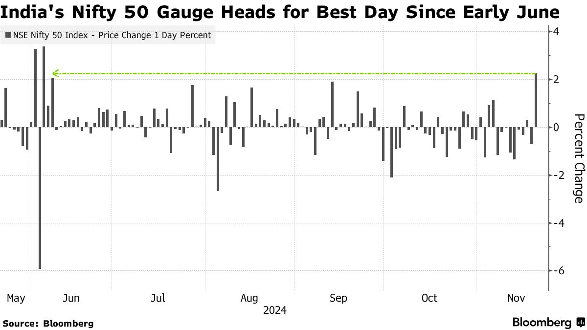 这波反弹还得益于对由总理纳伦德拉·莫迪领导的印度人民党在马哈拉施特拉邦选举中获胜的乐观情绪。作为印度金融中心孟买的家乡,该州于周三结束投票,出口民调 预测胜利 将在周六计票时为印度人民党领导的联盟带来胜利。