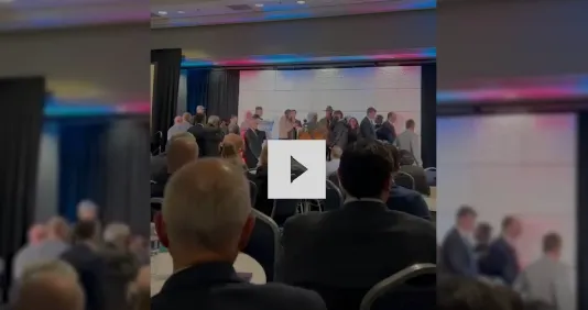 沙特阿拉伯石油高管齐亚德·阿尔-穆尔谢德 被迫离开 昨天在波士顿郊区的一家酒店的舞台,因为气候抗议者打断了麻省理工学院赞助的活动。当阿尔-穆尔谢德发言时,大约15人冲上舞台,挥舞着写有“谋杀犯”的海报,并高喊“不要再有钻井平台”等口号。然后他们转向观众——一群金融高管——并高喊:“我们需要清洁空气,而不是另一个亿万富翁。”