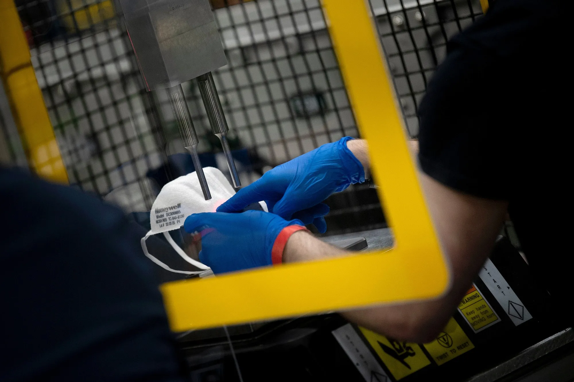 一名在霍尼韦尔国际公司生产个人防护装备的工人。