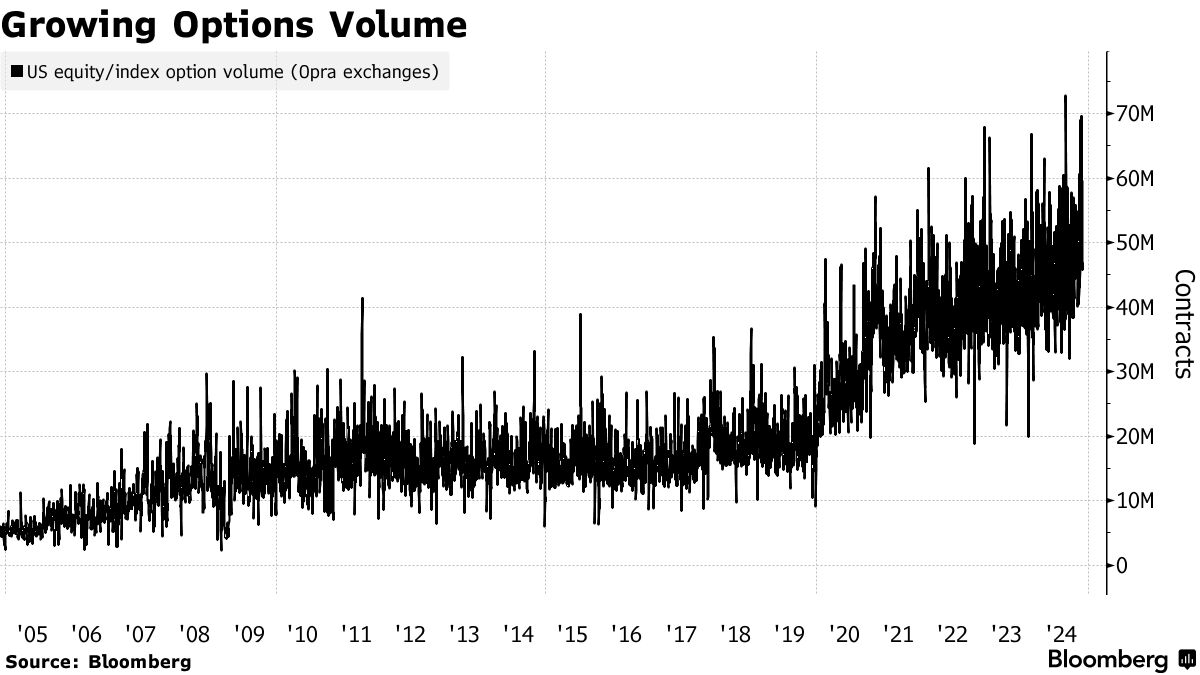 关税、地缘政治紧张局势和对政府政策的不确定性将增加价格波动,提升期权的吸引力。散户投资者已经涌向 Robinhood Markets Inc. 和其他交易应用程序,进行股指和交易所交易基金的短期期权交易。