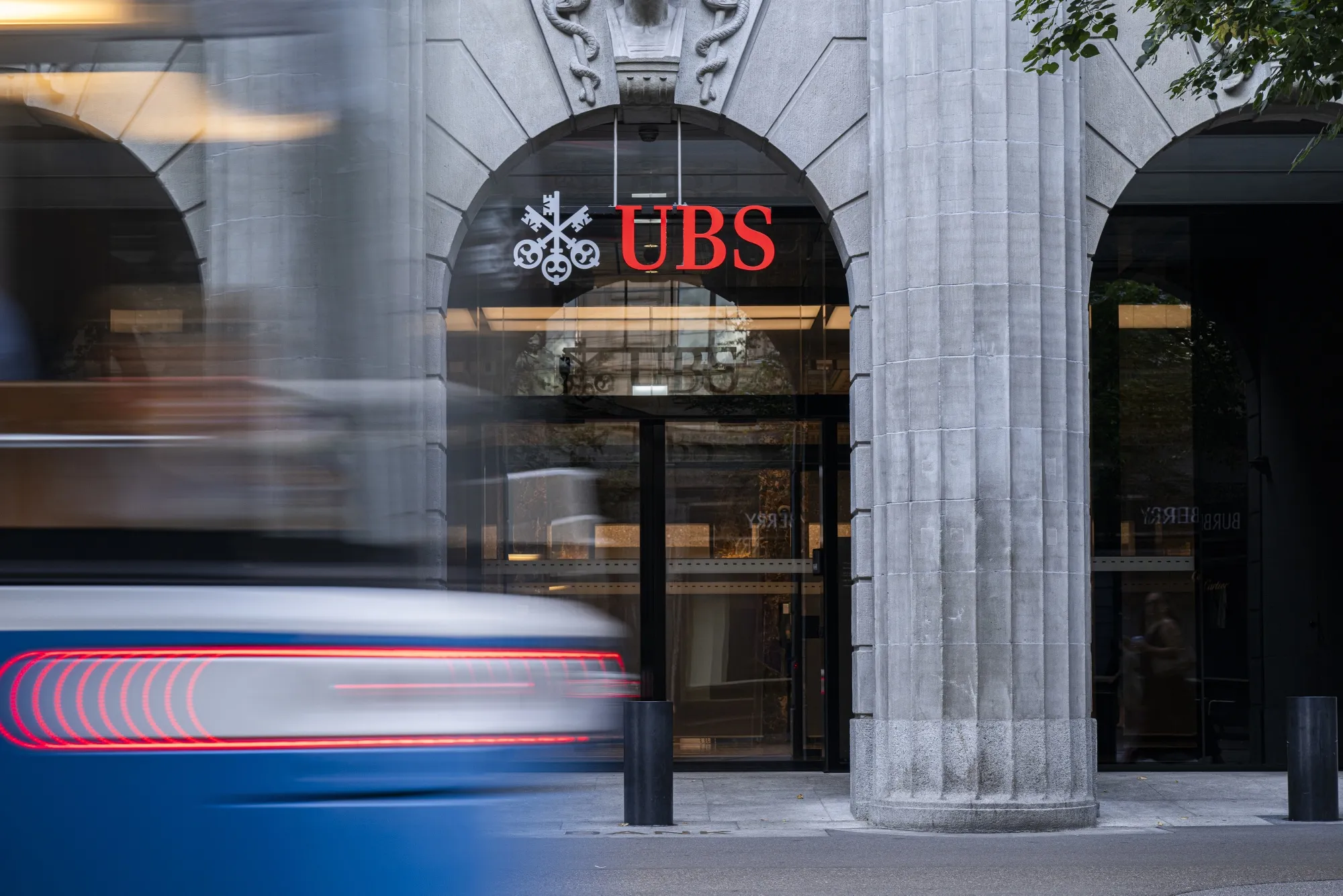 2024年8月14日,瑞士苏黎世,瑞银集团总部入口处的标志。