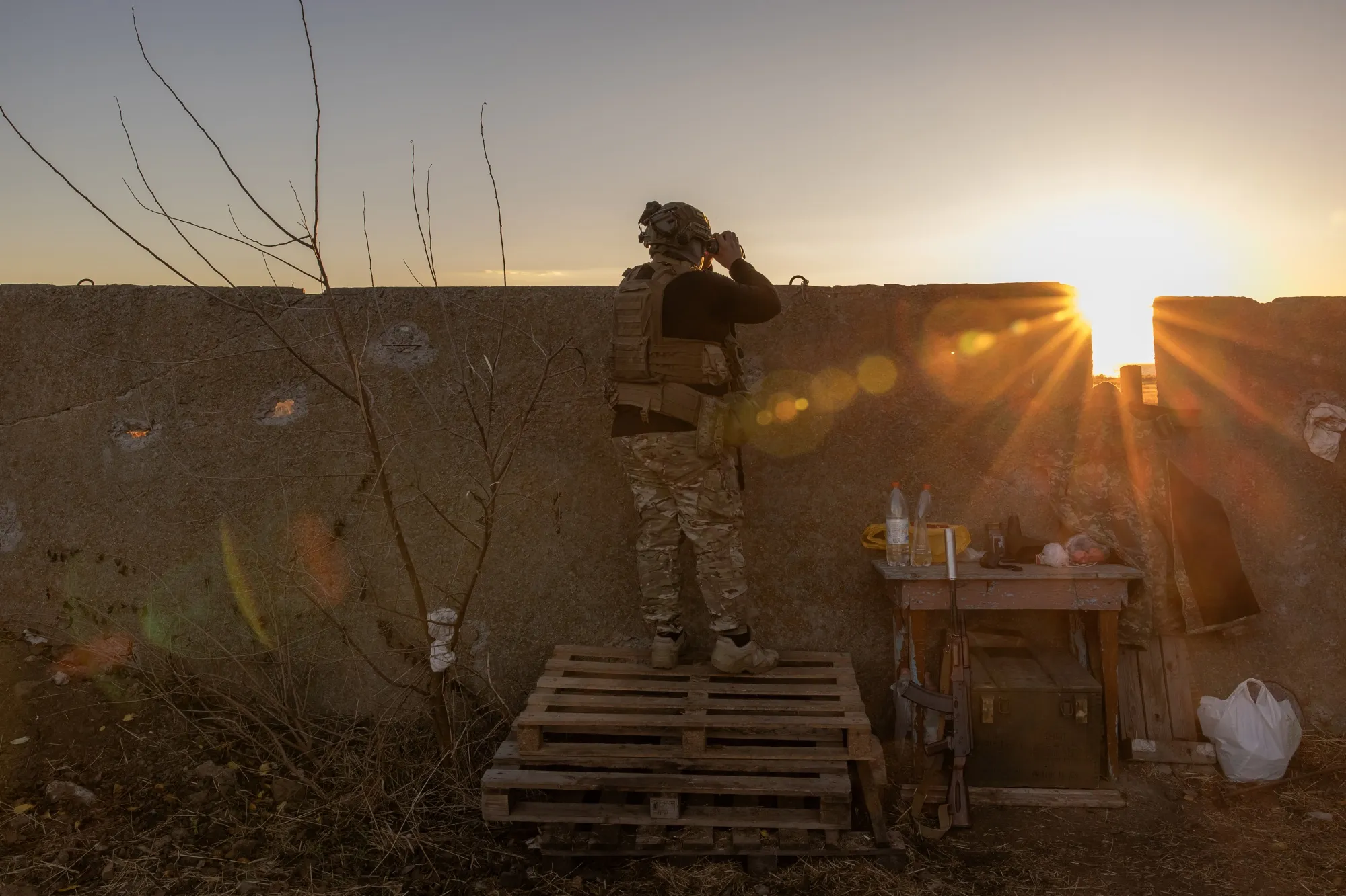 关注可能即将到来的事情:2023年,一名乌克兰军人在第聂伯前线。