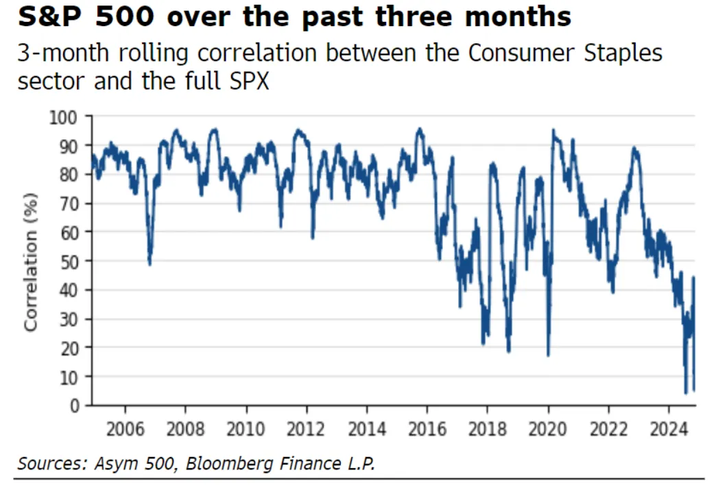 “我们相信,与2024年的大部分时间不同,目前有充分的理由保持低相关性,因为正在讨论的大量政策变化可能会对个别行业产生影响,而不是对整个市场,”Fishman说。
