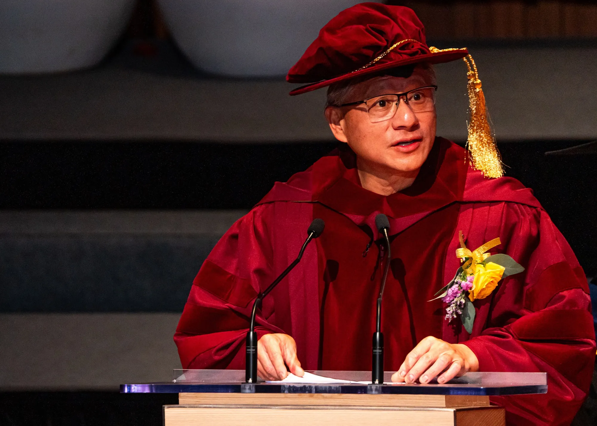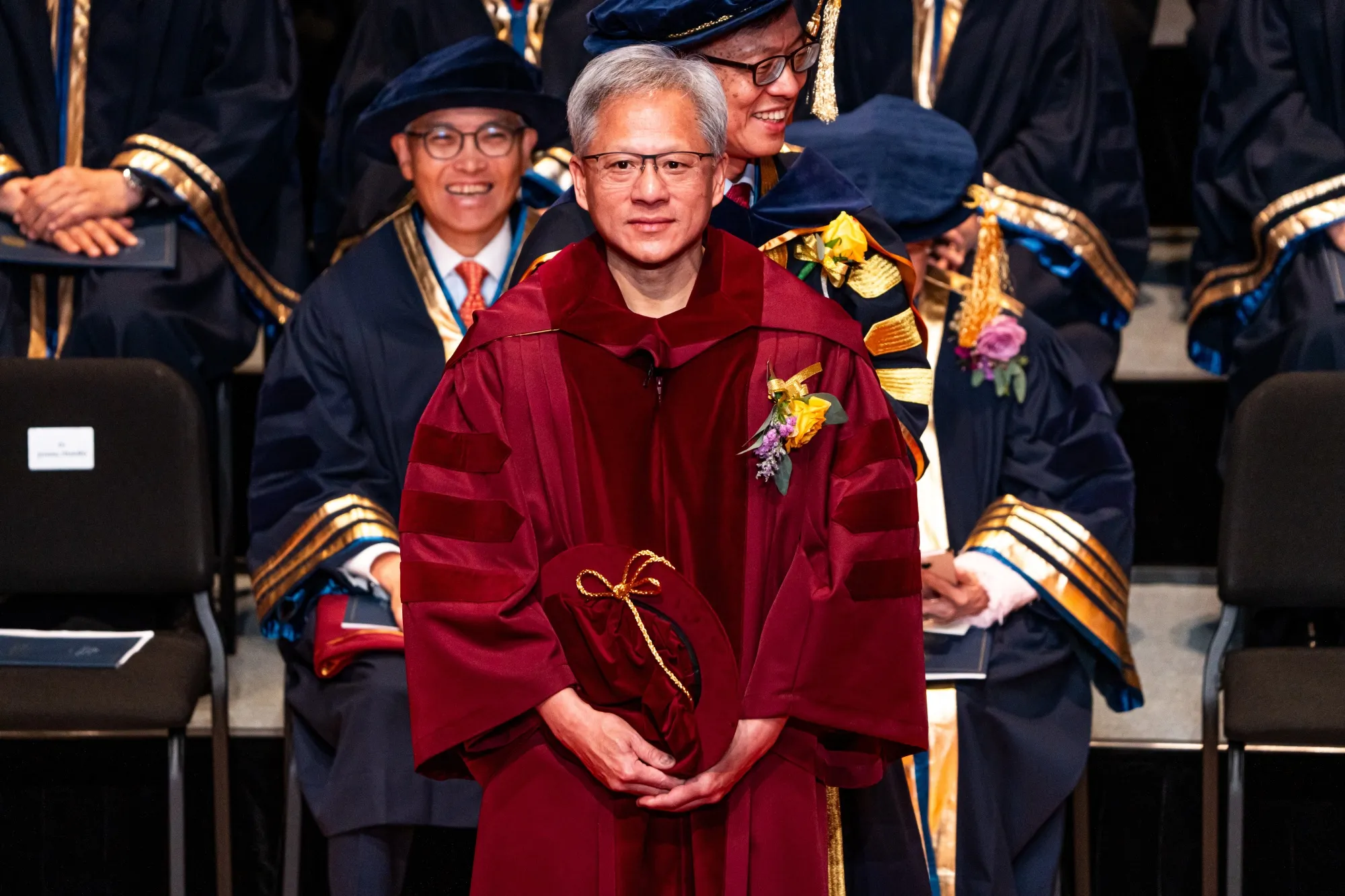 詹森·黄在周六强调了中国对人工智能发展的贡献,同时他接受了香港科技大学的工程荣誉博士学位。
