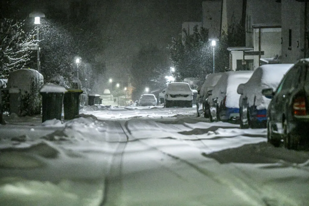 雪覆盖了巴登-符腾堡州一个城镇的街道,11月22日。