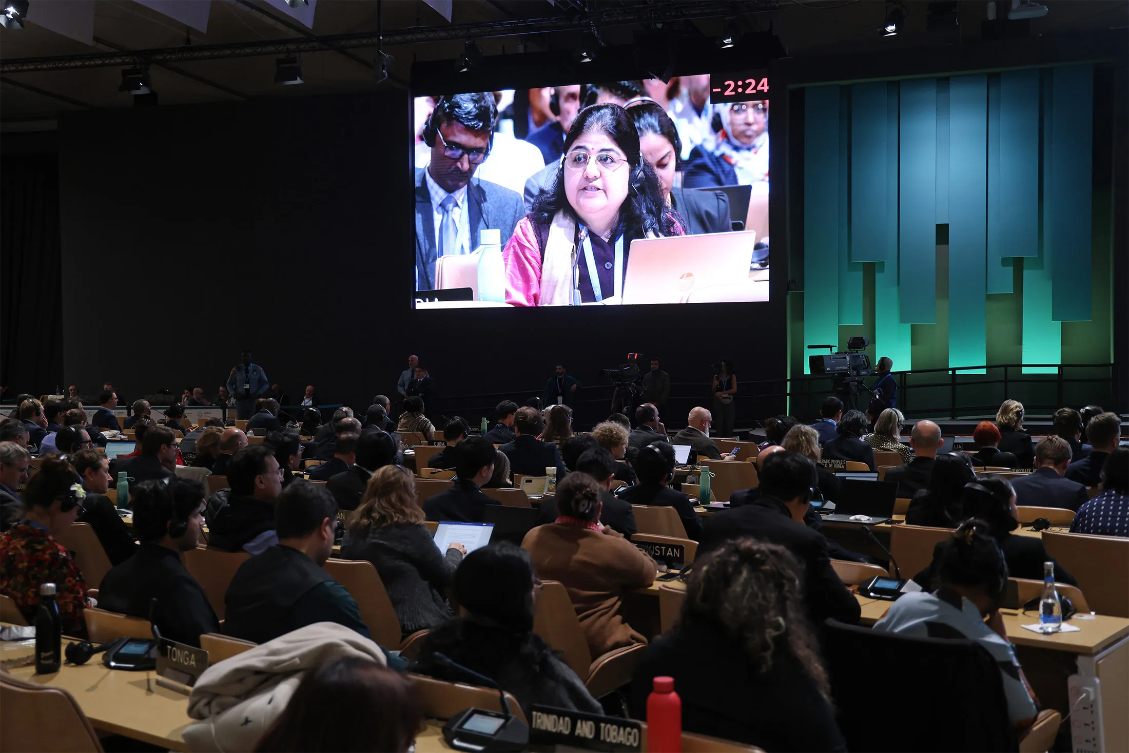 印度代表在11月24日闭幕全体会议的第二部分中对CMA 11a发表意见。摄影师:肖恩·加卢普/盖蒂图片社印度代表昌迪·雷娜称该协议不够充分。“目标太少,太遥远,”她说,她的演讲多次被掌声和欢呼声打断。