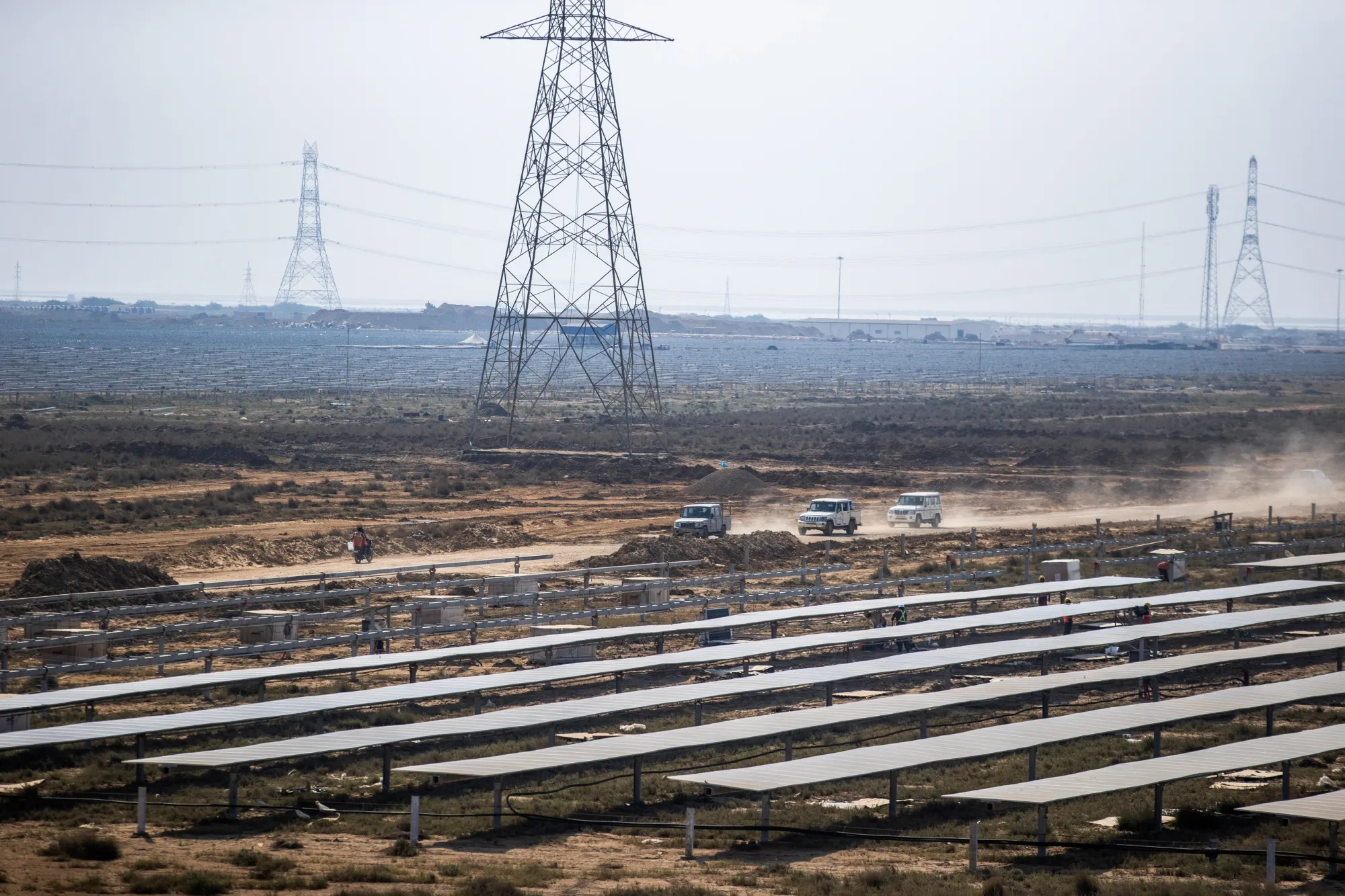 印度阿达尼绿色能源有限公司可再生能源园区的太阳能电池板。