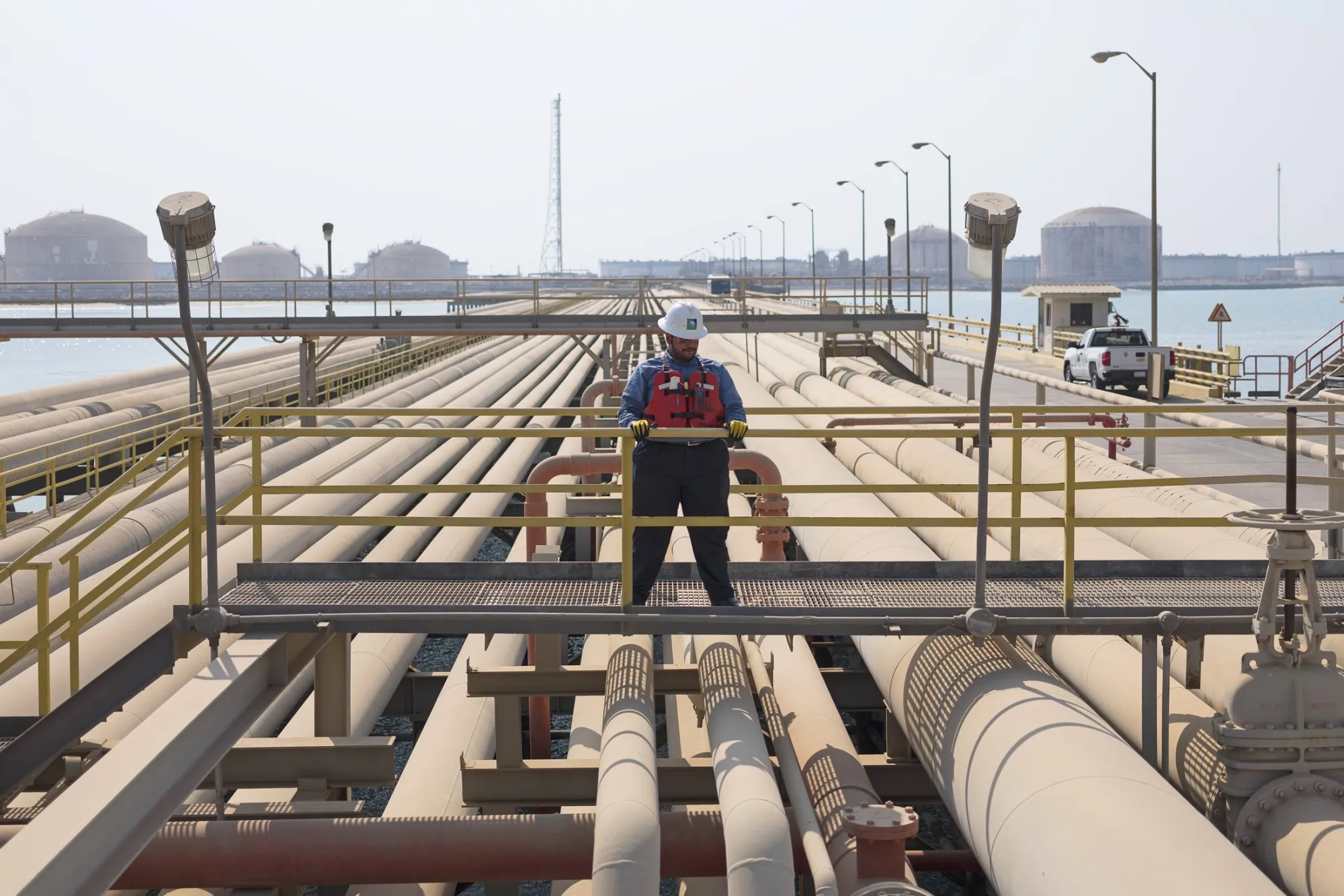 阿美石油支付的股息超过其国际同行。在沙特阿拉伯的拉斯坦努拉炼油厂。照片来源:彭博社
