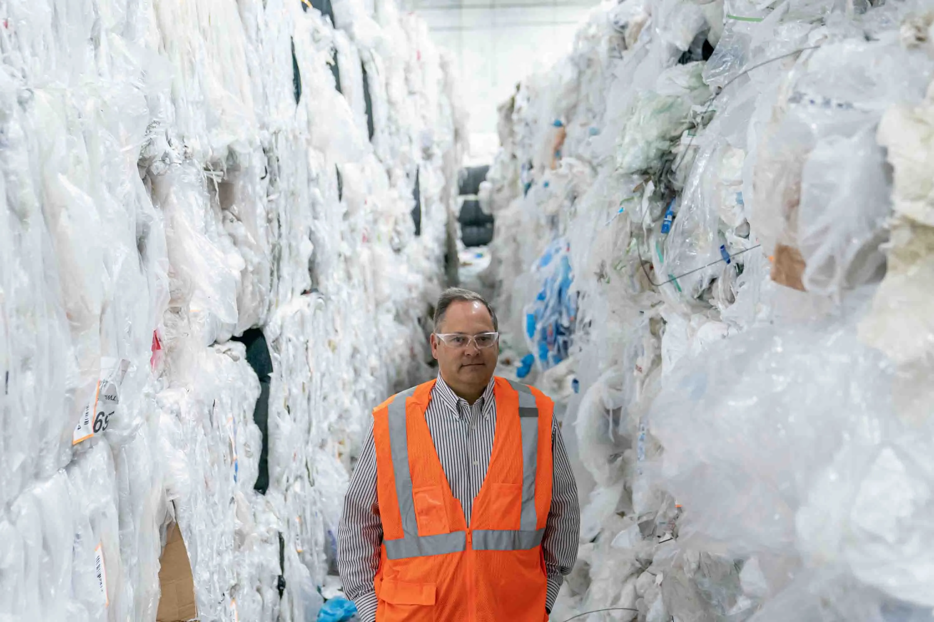 Trex公司的员工与一捆捆的废旧塑料站在一起,该公司将这些塑料回收成甲板材料。摄影师:Nathan Howard/Bloomberg大约一半的新塑料产品仅使用一次后就被丢弃。全球只有9.5%的塑料被回收。像埃克森美孚这样的石化公司支持更多的回收,包括对难以分解的产品(如糖果包装)进行“先进回收”。回收塑料可能成本高昂且污染,一些扩大回收规模的努力也面临困难。