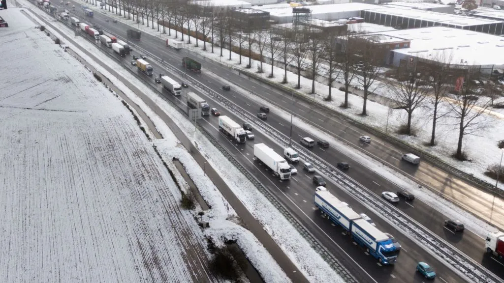由于荷兰杜伊文附近的雪,Tucks驾驶缓慢。