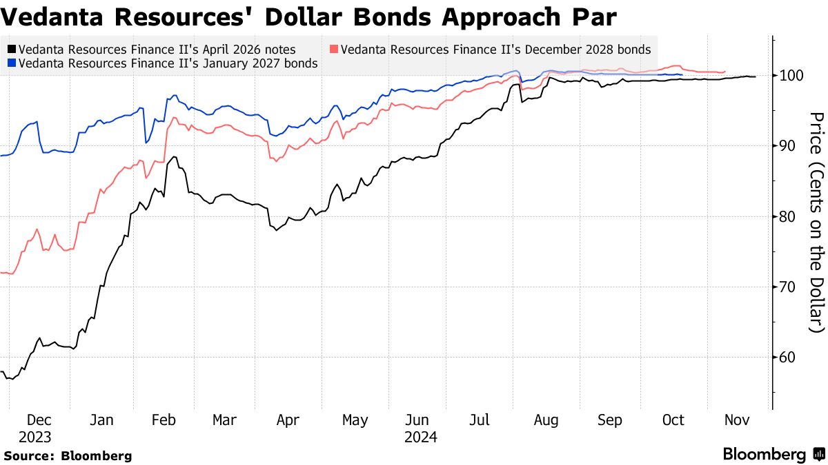 投资者迄今为止对这些举措给予了回报。维丹塔资源金融二期有限公司的2026年4月到期的票据在1月份触及约60.4美分的低点后,几乎回升至平价,根据彭博社汇编的数据。今年以来,该票据上涨了77%,是亚洲表现最佳的垃圾债券之一。