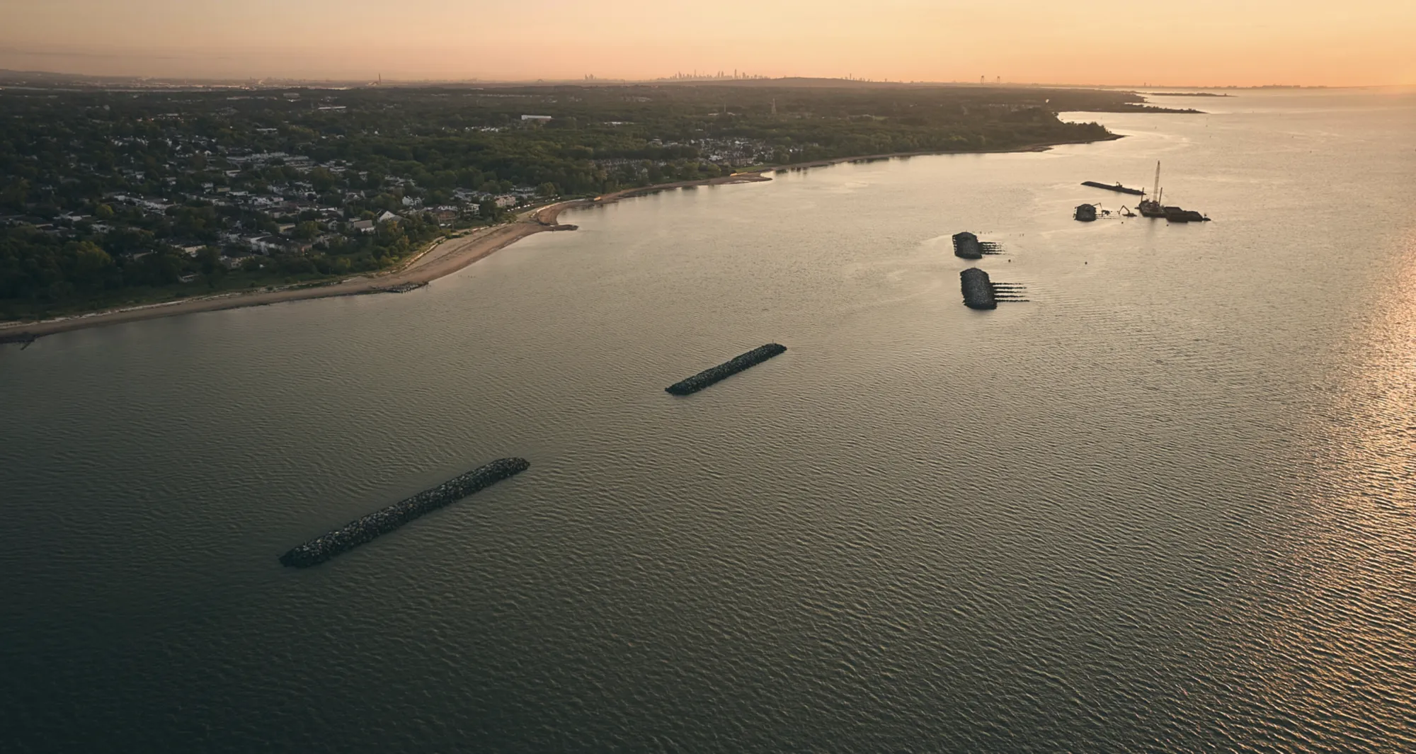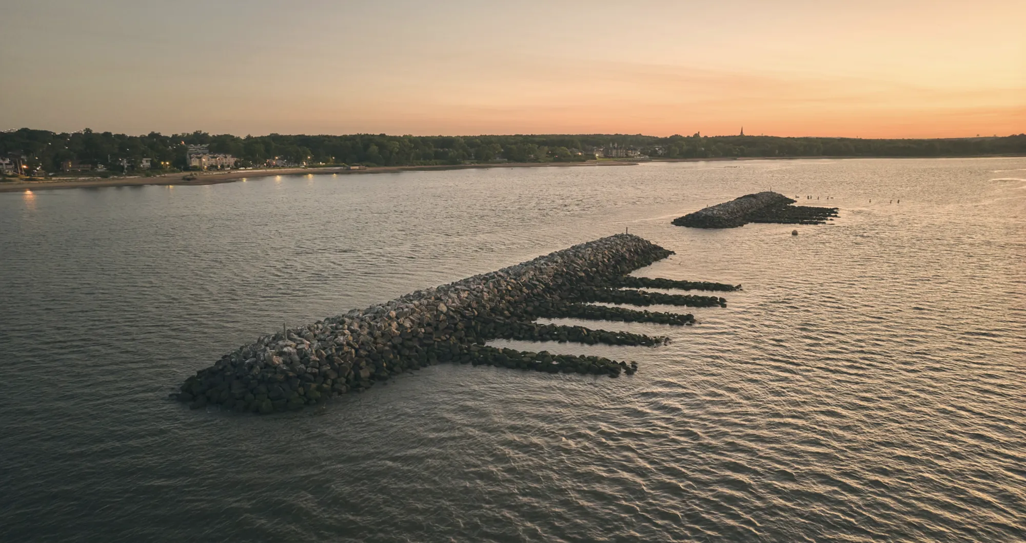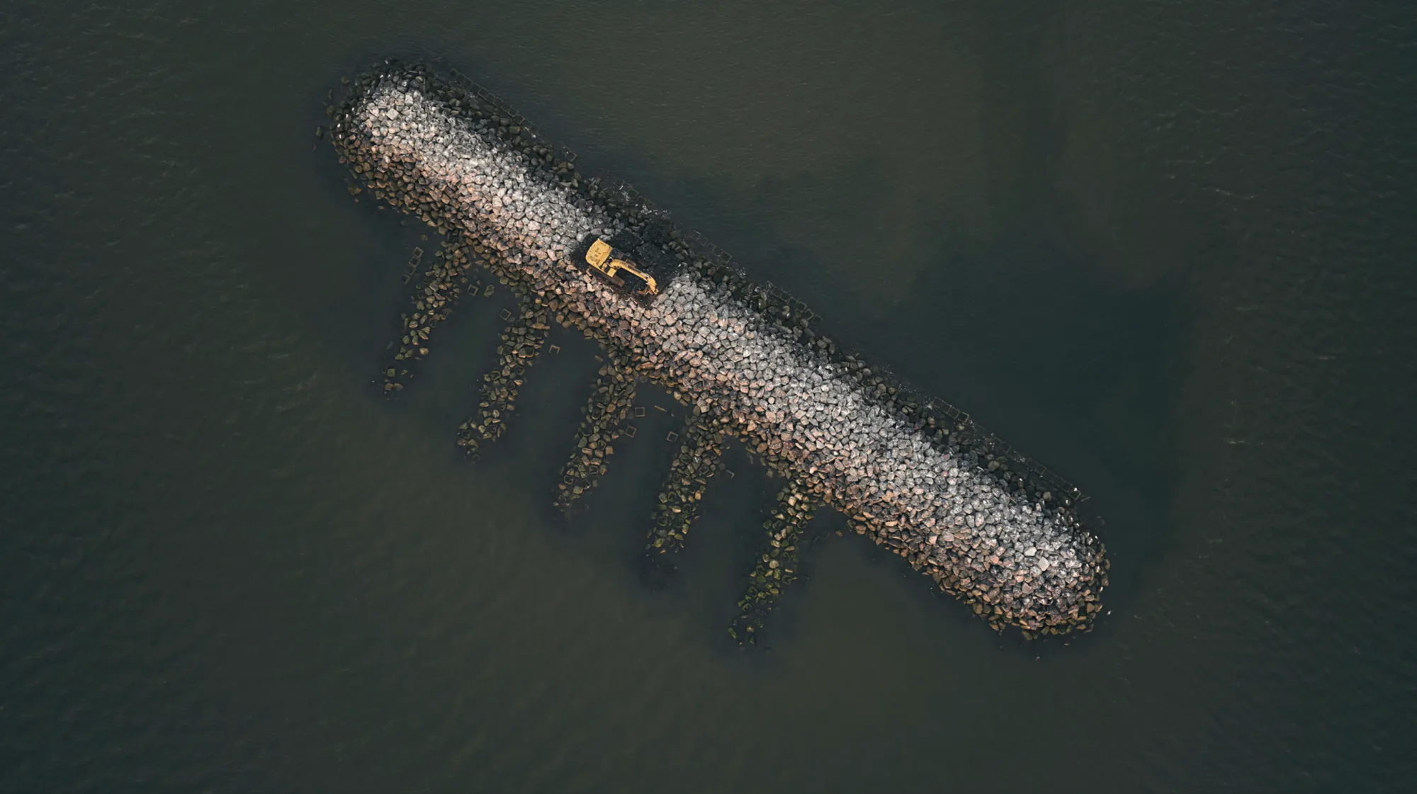 我面前的石堆代表了一项创新的1.11亿美元努力,以确保灾难不会重演。这个名为生活防波堤的项目,是一个旨在打破未来风暴潮波浪的人工礁网络,从而减少其破坏性高度和动能。生活防波堤的每一块石头——2400线性英尺——都经过精心塑形和定位。礁石之间的间隙经过校准,以确保洪水不会被困在内部,而围绕它们的波浪会相互碰撞,从而耗尽它们的能量。