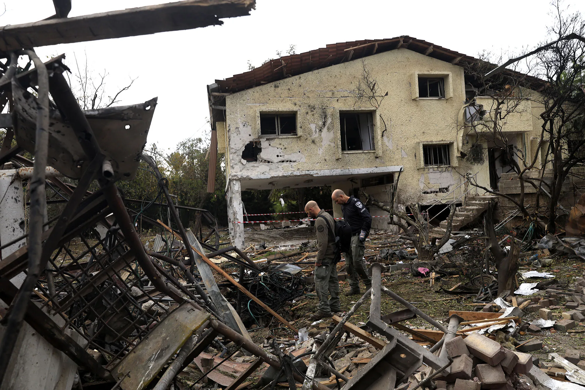 紧急救援人员于11月24日响应以色列Rinatya的火箭袭击现场。
