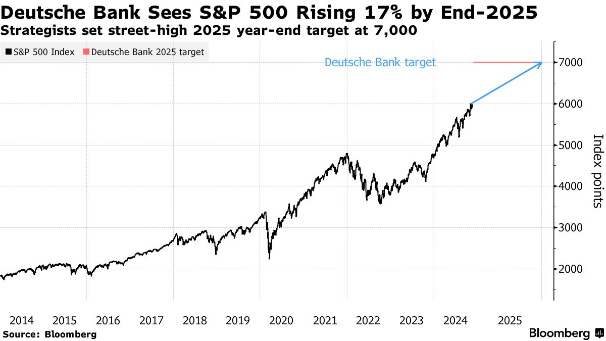 标准普尔500指数:德意志银行的查达预计标准普尔将达到7000点,经济强劲增长 - 彭博社